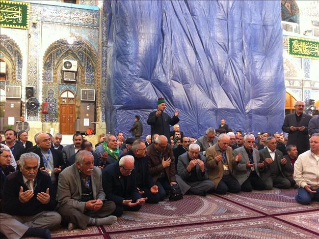 Alevi dedeleri, Bektaşi babaları ve taliplerin de aralarında bulunduğu grup, Hz. Hüseyin, sancaktarı Celal Abbas'ın türbeleri ile Kerbela savaş alanı ve savaş çadırlarının bulunduğu yerleri ziyaret etti. Grup, Hz. Hüseyin cami ve türbesini de gezdi. (Ertuğrul Subaşı - Anadolu Ajansı)Ertuğrul Subaşı