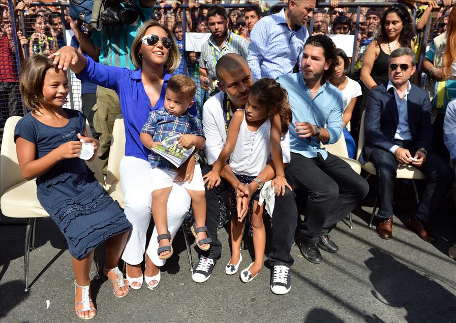 1907 UNIFEB, FENERBAHCELILER DERNEGI (FEDER), CEFAKAR KANARYALAR (CK) VE VAMOS BIEN TARAFTAR GRUPLARININ BIR ARAYA GELEREK ONCU OLDUKLARI VE TUM TARAFTARLARIN KATKILARIYLA TAMAMLANAN, 3 TEMMUZ SURECI NEDENIYLE ACILISI ERTELENEN FENERBAHCE FUTBOL TAKIMI KAPTANI ALEX DE SOUZA'NIN HEYKELI, KADIKOY YOGURTCU PARKI'NIN KARSISINDA BULUNAN PARK ALANINDA ACILDI. ACILISA BREZILYALI FUTBOLCUNUN, ESI DAIANNE VE COCUKLARI DA KATILDI. (ANADOLU AJANSI - BURAK AKBULUT) (20120915)BURAK AKBULUT