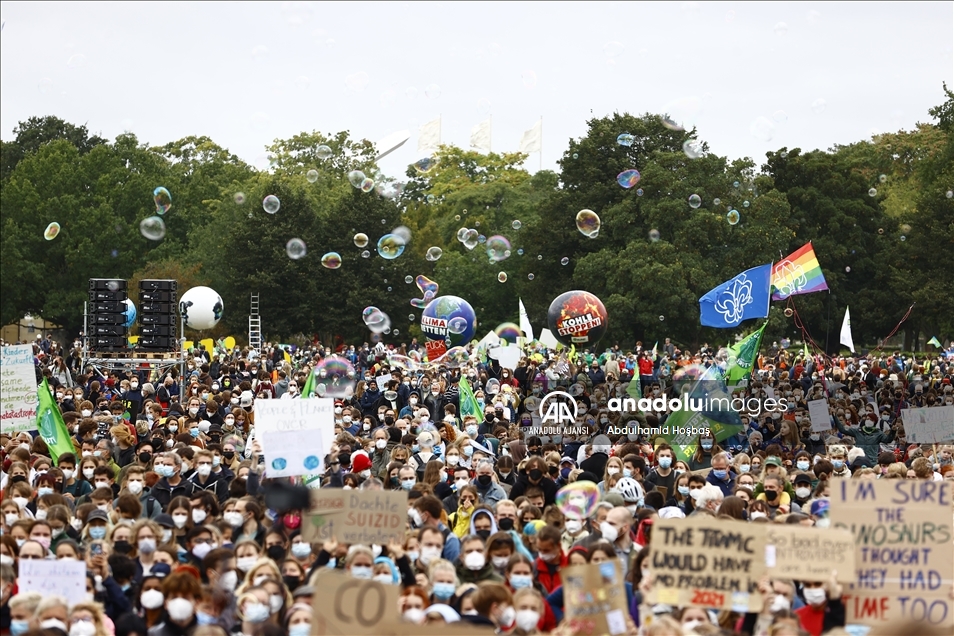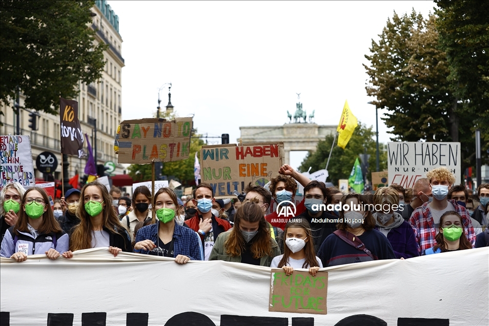Almanya'nın başkenti Berlin'de toplanan çevre aktivistleri hükümetlerin iklim politikalarını protesto etti. "Fridays For Future" eylemleri kapsamında gerçekleşen protestoda iklim konusunda daha ciddi adımlar atılmasının sağlanması ve iklimin korunması istendi.