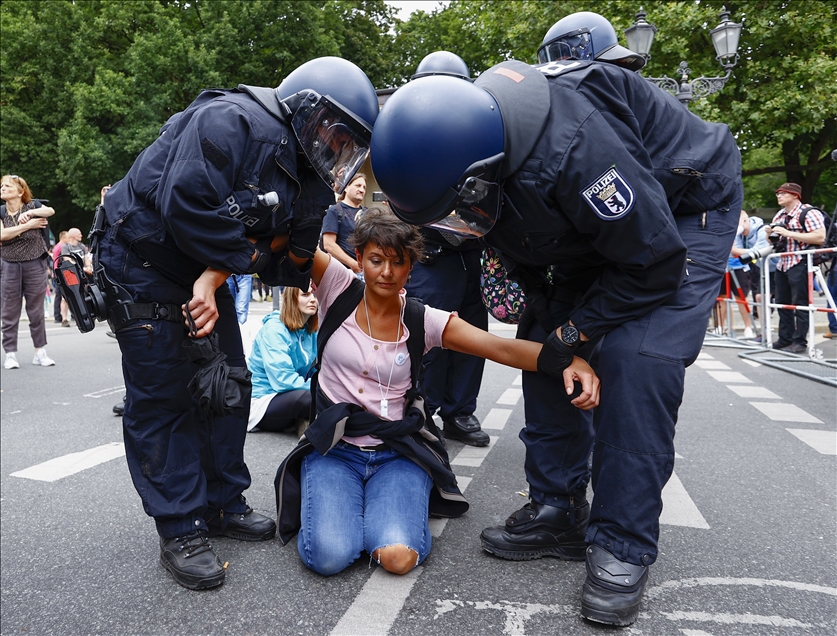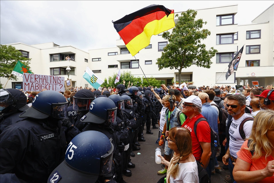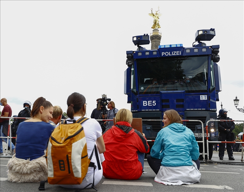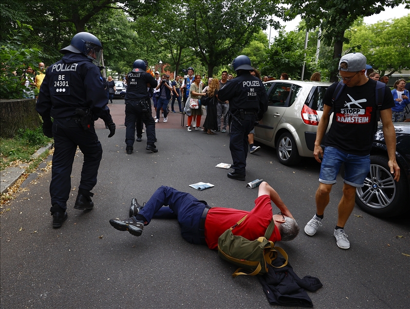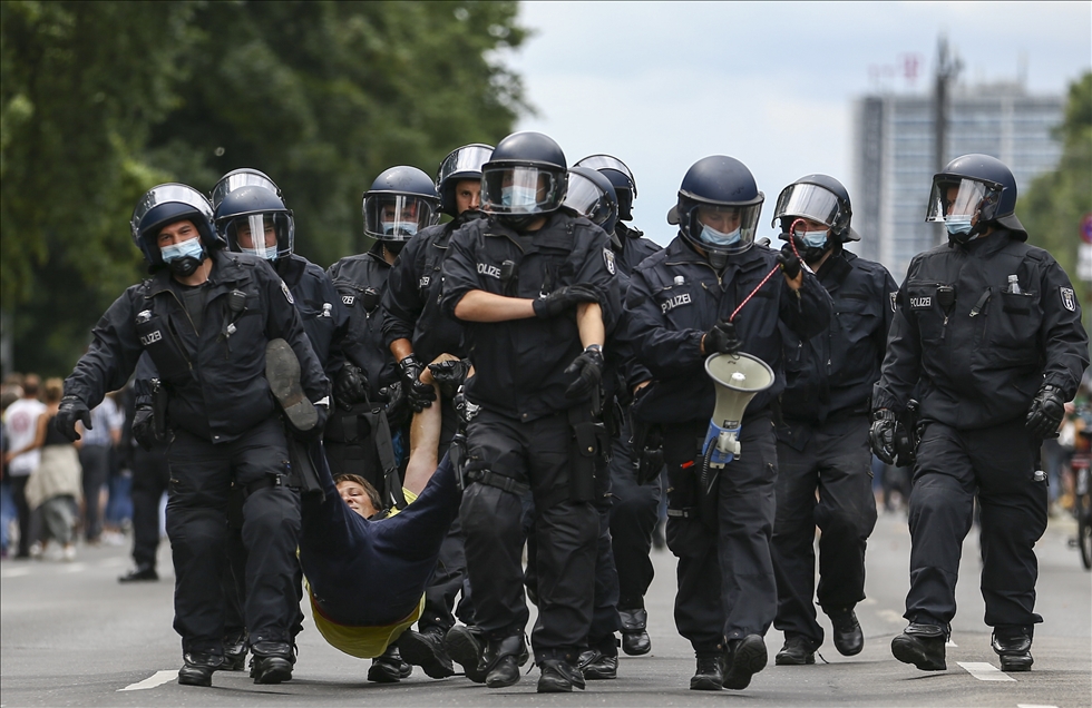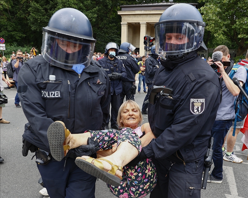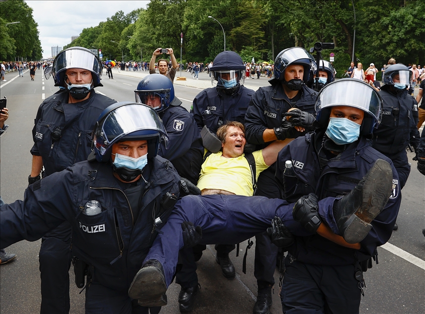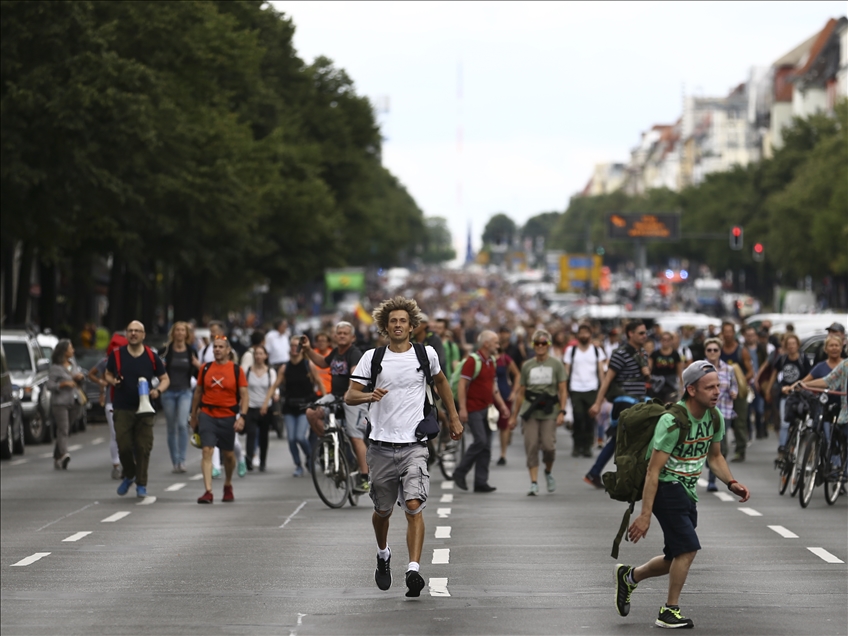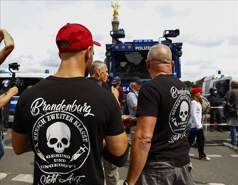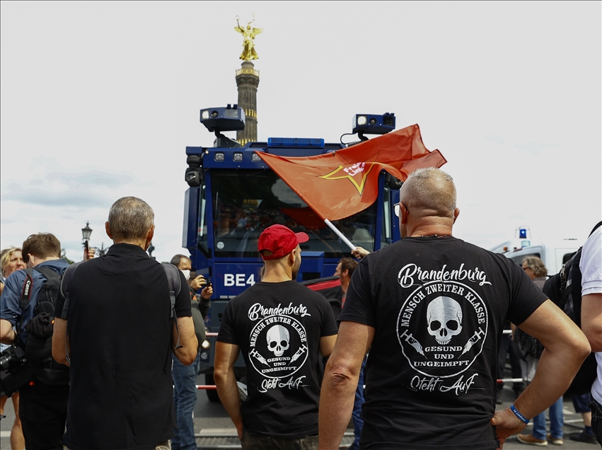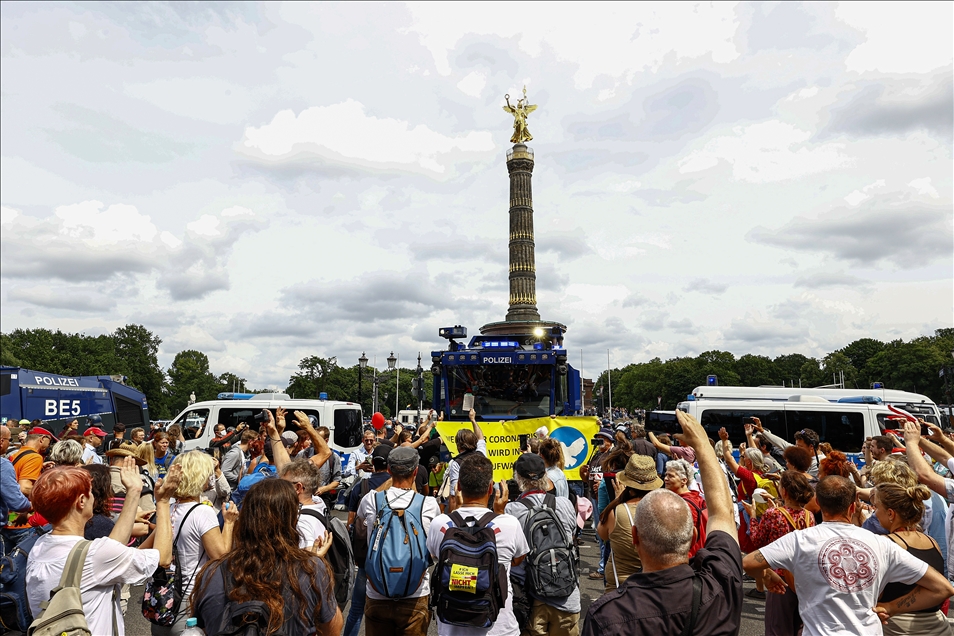 Almanya’nın başkenti Berlin’de, mahkemenin yasaklamasına rağmen yeni tip koronavirüs (Kovid-19) karşıtları hükümetin politikalarını protesto etti.