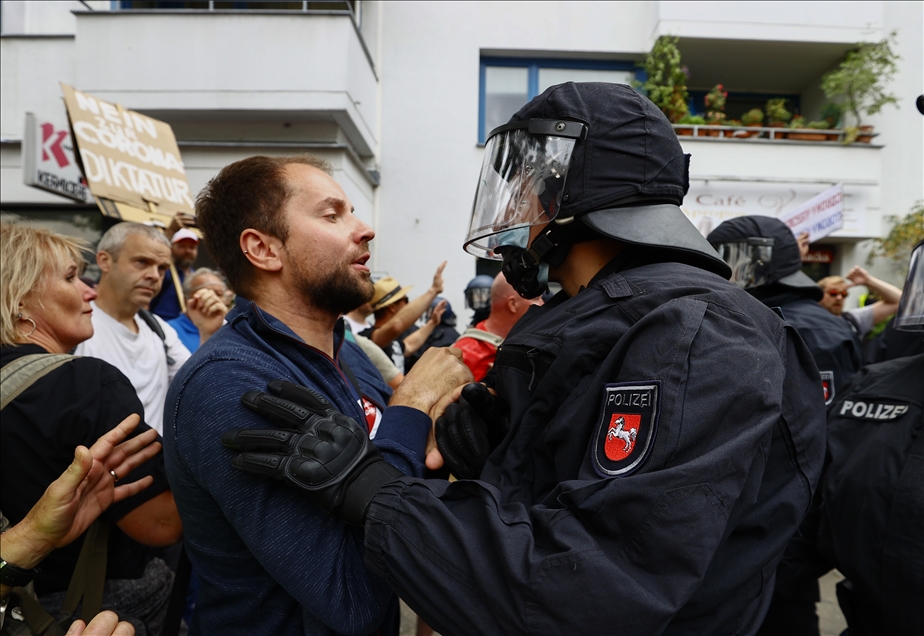 Güvenlik güçleri ile göstericiler arasında zaman zaman arbede yaşanırken, polis göstericileri dağıtmak için biber gazı ve orantısız şiddet kullandı. Mukavemet gösteren çok sayıda Kovid-19 karşıtı kimlik tespiti yapılmak üzere geçici olarak gözaltına alındı. ( Abdulhamid Hoşbaş - Anadolu Ajansı )Abdulhamid Hoşbaş