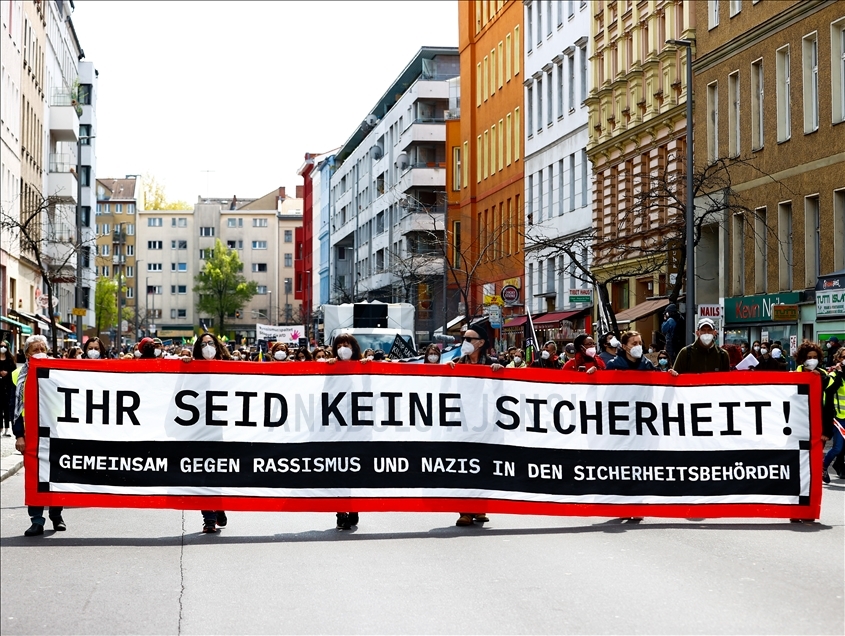 Almanya'nı başkenti Berlin'de binlerce kişi ırkçılığı ve polis şiddetini protesto etti. Berlin Emniyet Müdürlüğü önünde toplanan binlerce gösterici, Spree Walt Meydanı'na kadar yürüdü.