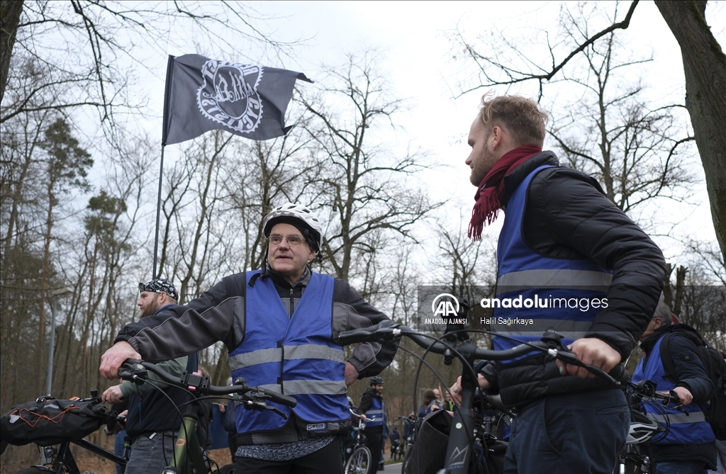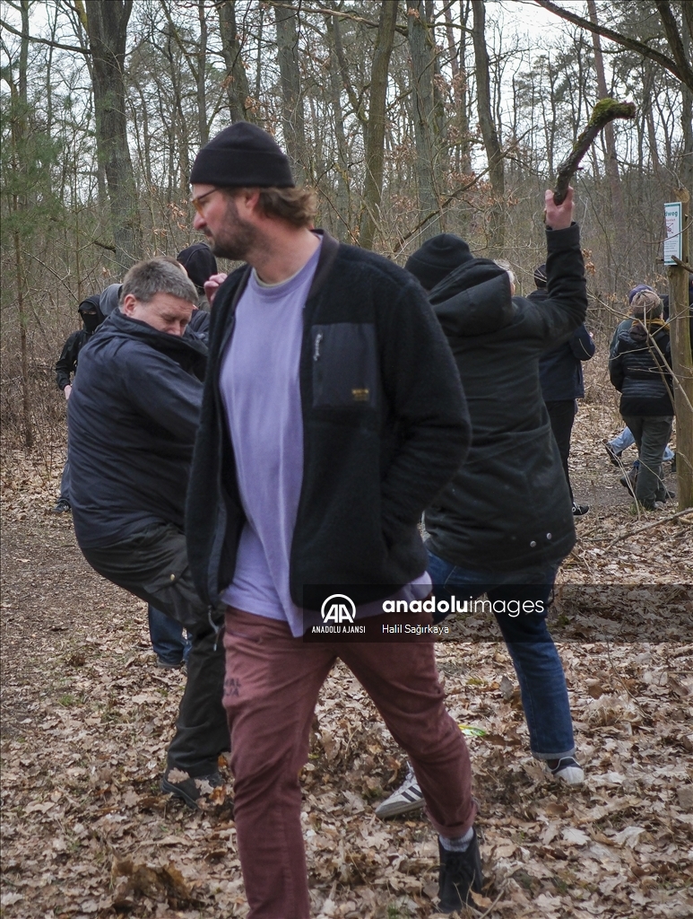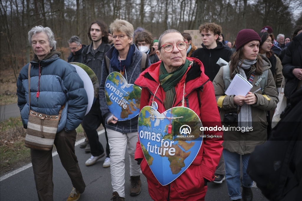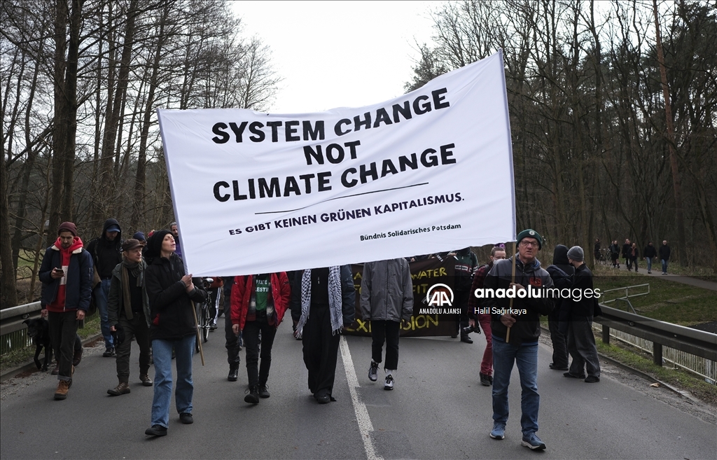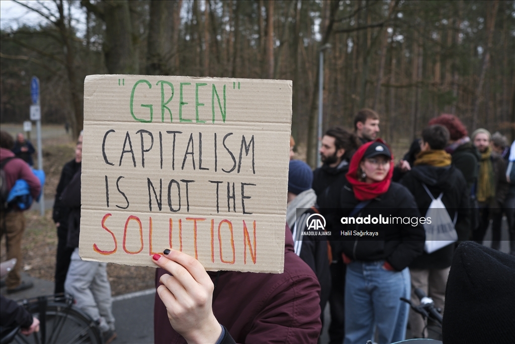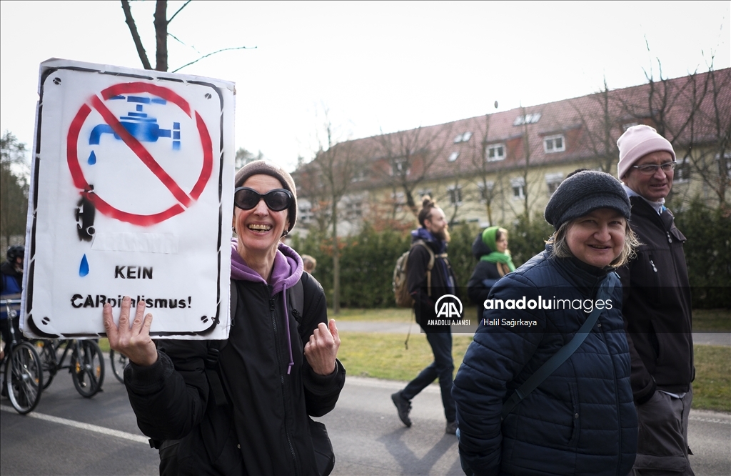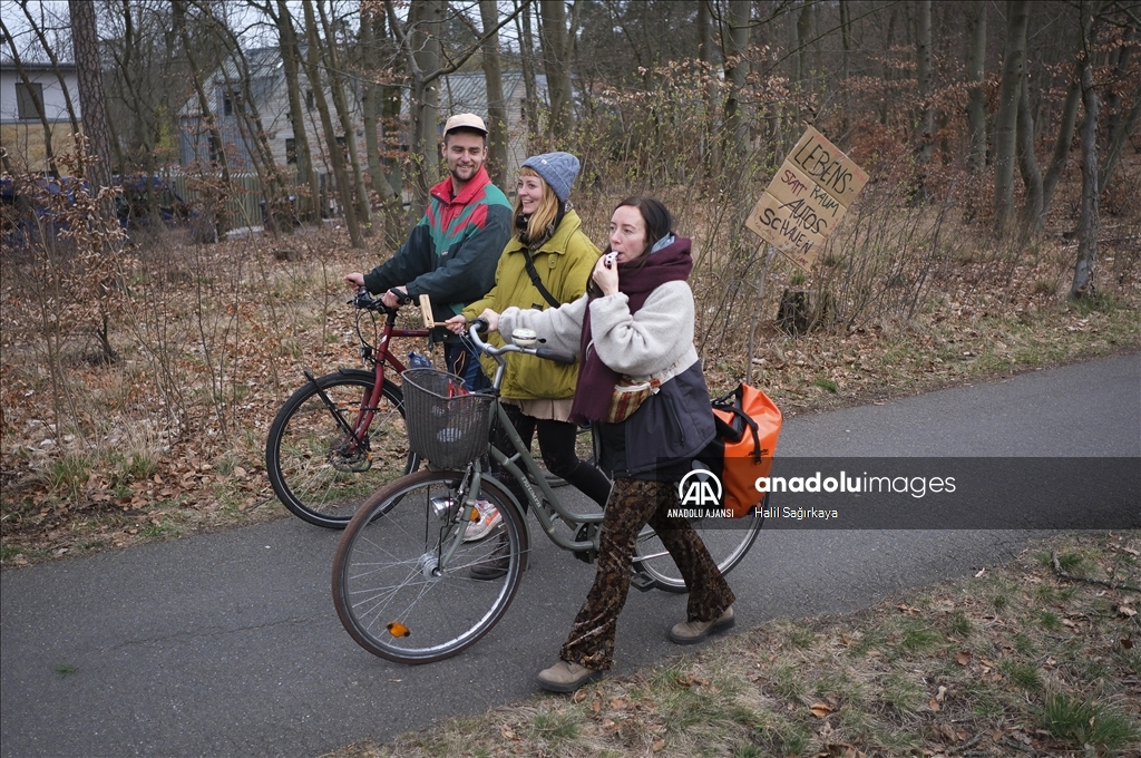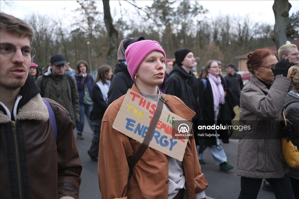 ABD merkezli elektrikli otomobil üreticisi Tesla'nın, Berlin yakınlarındaki Grünheide de bulunan fabrikasını genişletme planı protesto edildi. Tesla fabrikasının yakınlarındaki tren istasyonunda toplanan yüzlerce kişi, sloganlar atarak fabrikanın etrafındaki ormanlık alanda yürüdü. ( Halil Sağırkaya - Anadolu Ajansı )Halil Sağırkaya