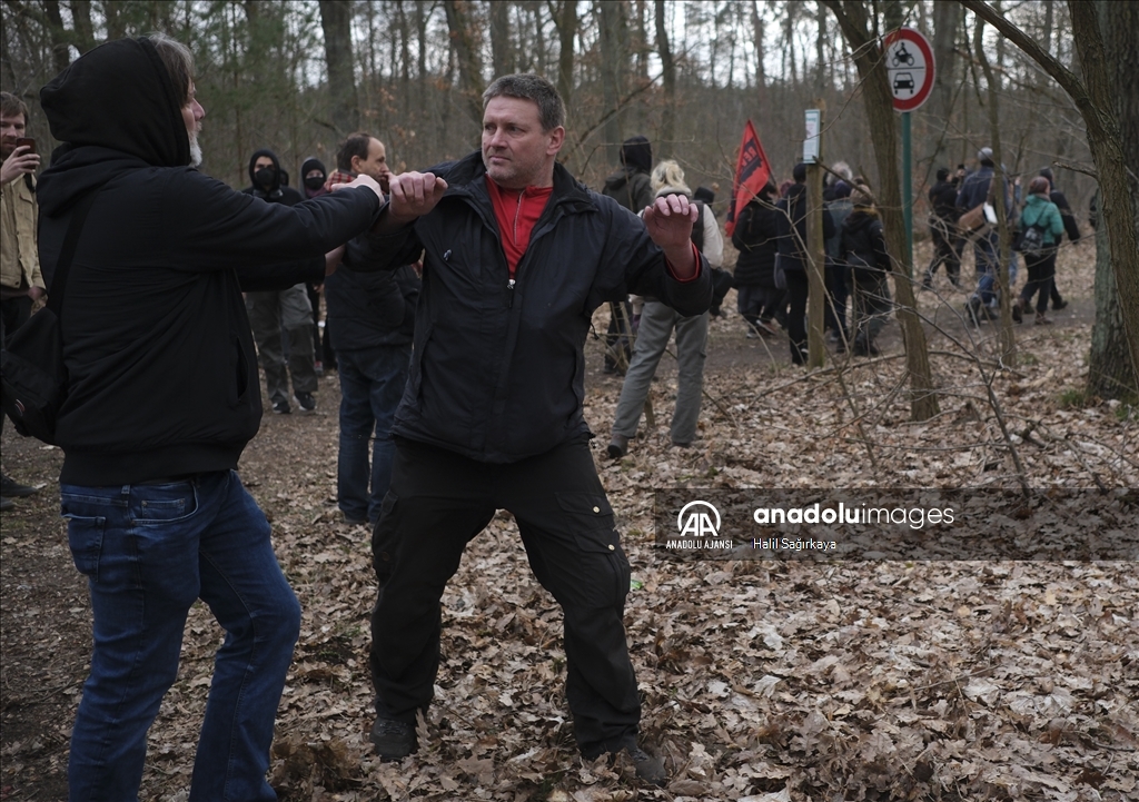 ABD merkezli elektrikli otomobil üreticisi Tesla'nın, Berlin yakınlarındaki Grünheide de bulunan fabrikasını genişletme planı protesto edildi. Tesla fabrikasının yakınlarındaki tren istasyonunda toplanan yüzlerce kişi, sloganlar atarak fabrikanın etrafındaki ormanlık alanda yürüdü. Göstericiler arasında zaman zaman tartışma yaşandı. ( Halil Sağırkaya - Anadolu Ajansı )Halil Sağırkaya