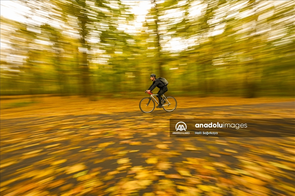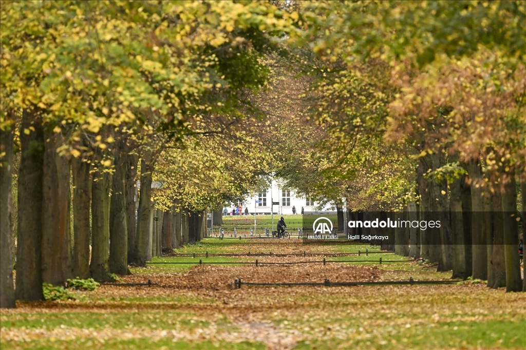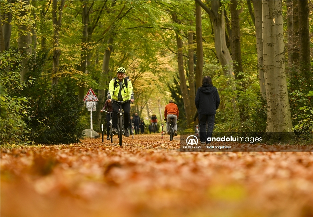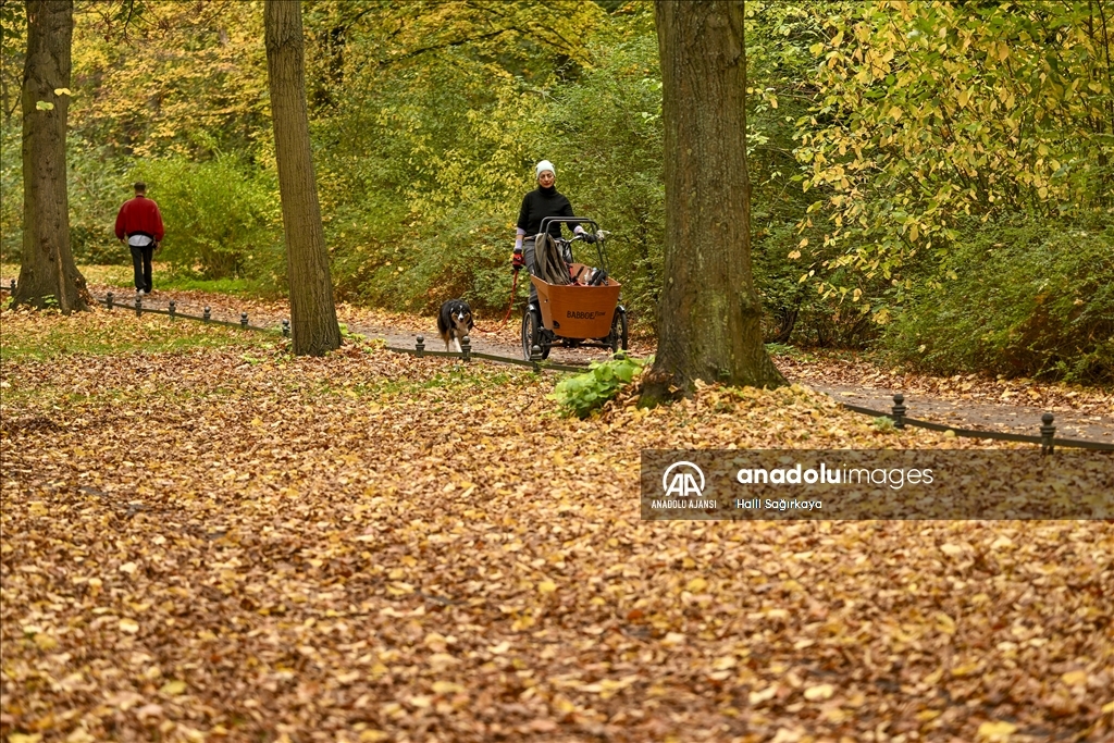 Almanya'nın başkenti Berlin'in simgelerinden Tiergarten Park, sonbaharın gelişi ile sarı, turuncu ve kırmızı tonlarına büründü. Parkı ziyaret edenler, burada bisiklet sürerek ve yürüyüş yaparak zaman geçirdi.