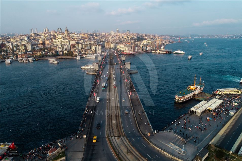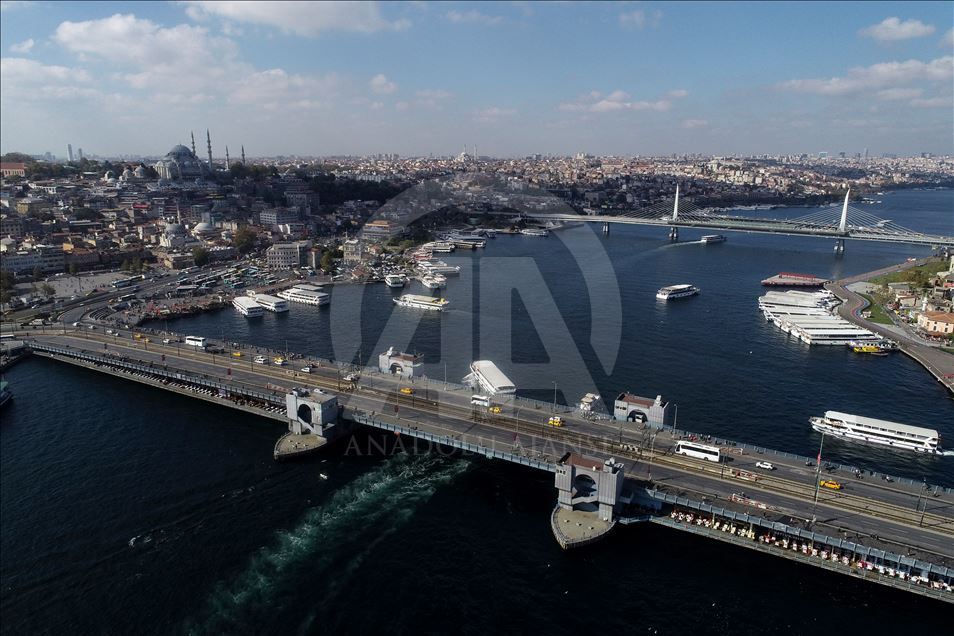 Tarihi yarımadanın kendine has dokusuyla en çok ilgi gören yerlerinden biri olan ve yabancılar tarafından Altın Boynuz (Golden Horn) olarak adlandırılan Haliç'teki Galata (fotoğrafta), Atatürk (Unkapanı) ve Haliç Metro köprüleri, İstanbul'un cazibe merkezlerinden biri olan Haliç'e her ne kadar şehir içi ulaşımı sağlamak amacıyla inşa edilseler de yıllar içinde kenti süsleyen birer gerdanlık haline geldi. ( Muhammed Enes Yıldırım - Anadolu Ajansı )Muhammed Enes Yıldırım