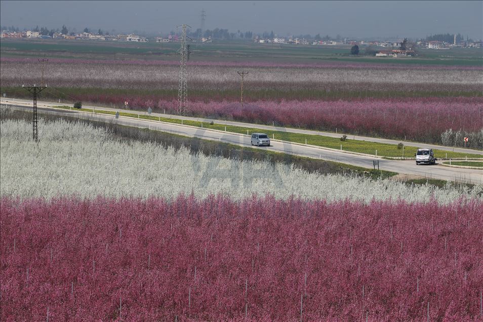 Hatay'da bir süredir etkili olan yağışların ardından güneşin kendisini göstermesiyle ağaçlar çiçek açtı. Bölgenin bereketli topraklarıyla ünlü Amik Ovası'ndaki meyve ağaçlarının çiçek açmasıyla güzel görüntü oluştu. ( Cem Genco - Anadolu Ajansı )Cem Genco