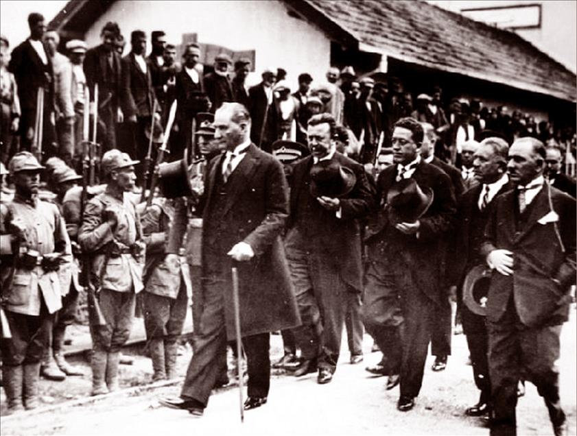Anadolu Ajansı arşivinden derlenen fotoğraflarla Mustafa Kemal Atatürk’ü 79. ölüm yıldönümünde saygıyla anıyoruz. Atatürk, 1922'de Rus ve Azerbaycan heyeti ile birlikte Afyon'un Çay ilçesinde görülüyor. (Arşiv)