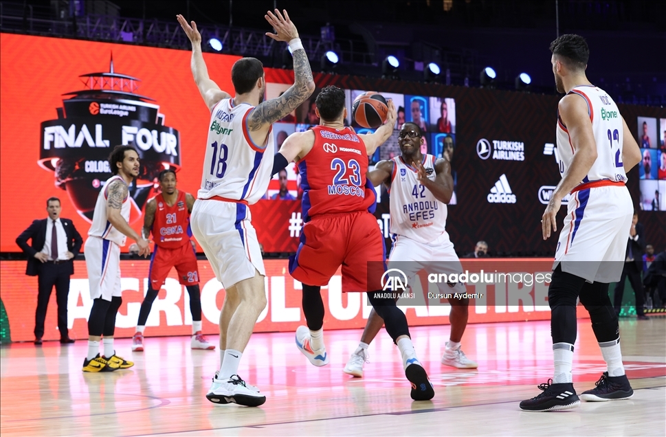 Basketbol THY Avrupa Ligi'nde 2020-2021 sezonu şampiyonunun belli olacağı Dörtlü Final, Almanya'da başladı. Köln kentindeki Lanxess Arena'da Anadolu Efes, Rusya'nın CSKA Moskova takımıyla yarı final maçında karşı karşıya geldi. ( Dursun Aydemir - Anadolu Ajansı )Dursun Aydemir