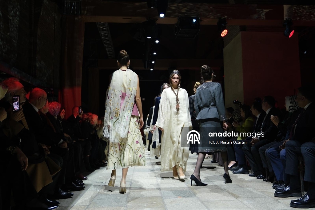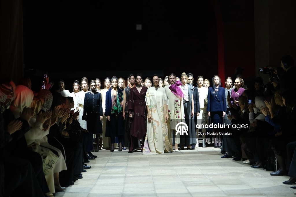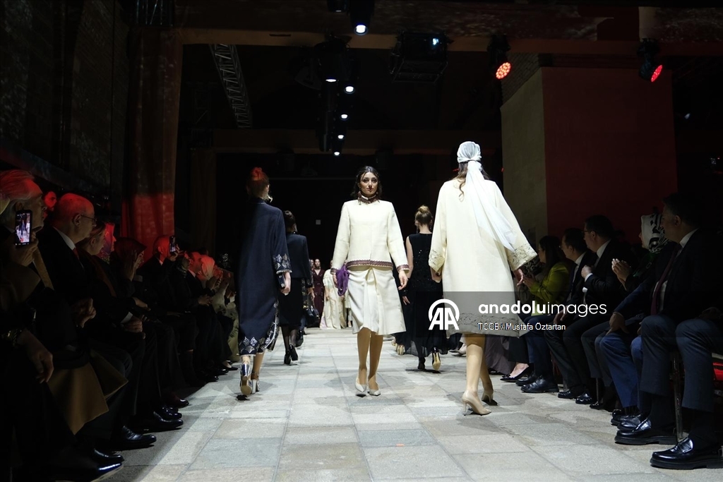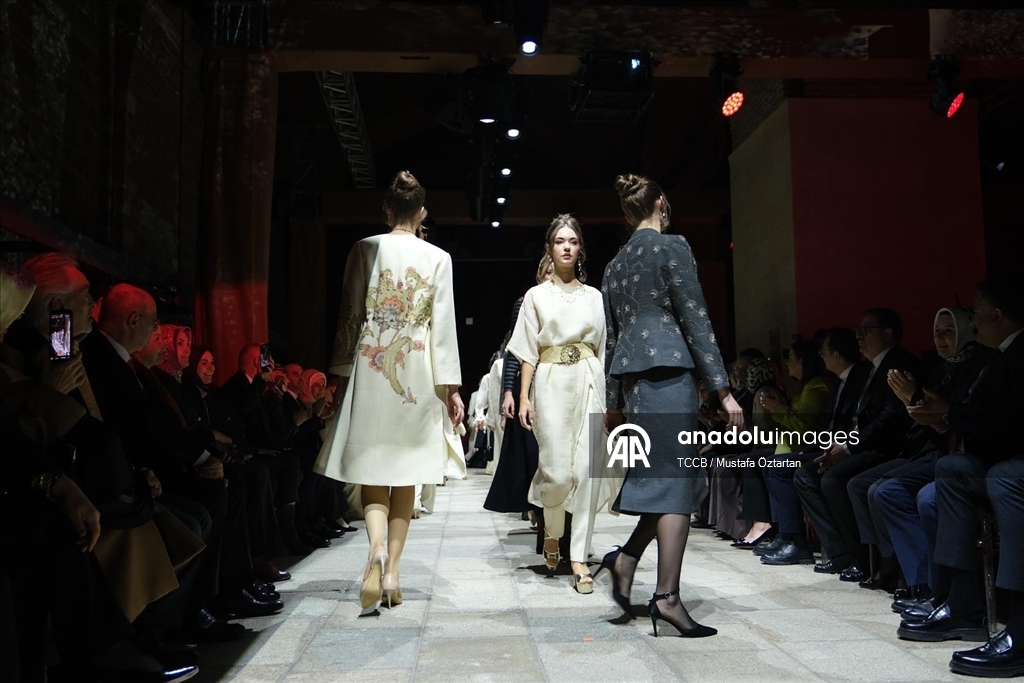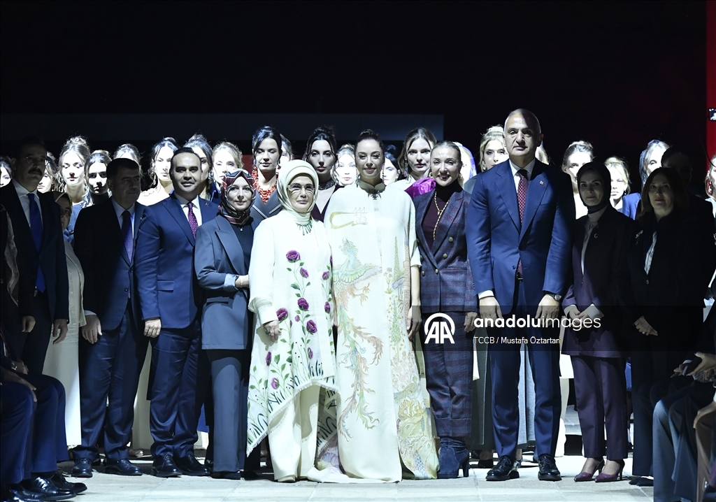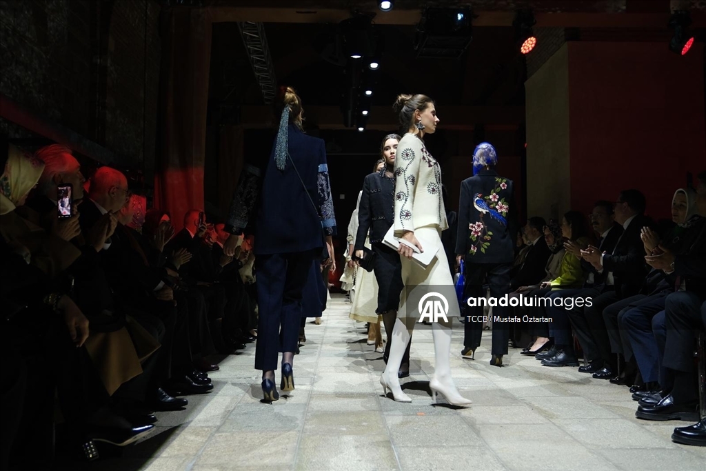Konuşmaların sonrasında Erdoğan, sunuculuğunu Ebru Akel'in üstlendiği ve sof kumaşından 35 kıyafetin gösteriminin yer aldığı defileyi izledi.TCCB / Mustafa Öztartan