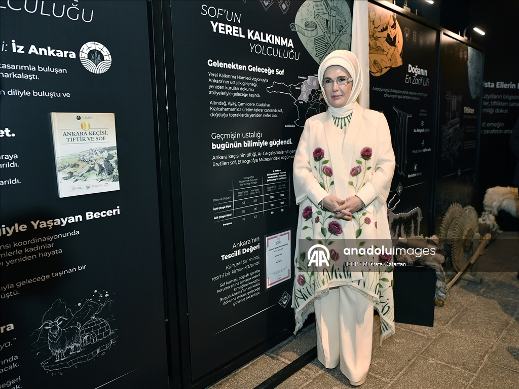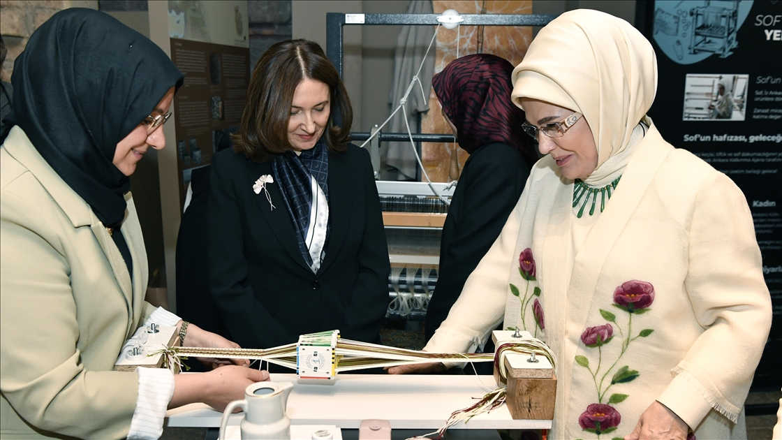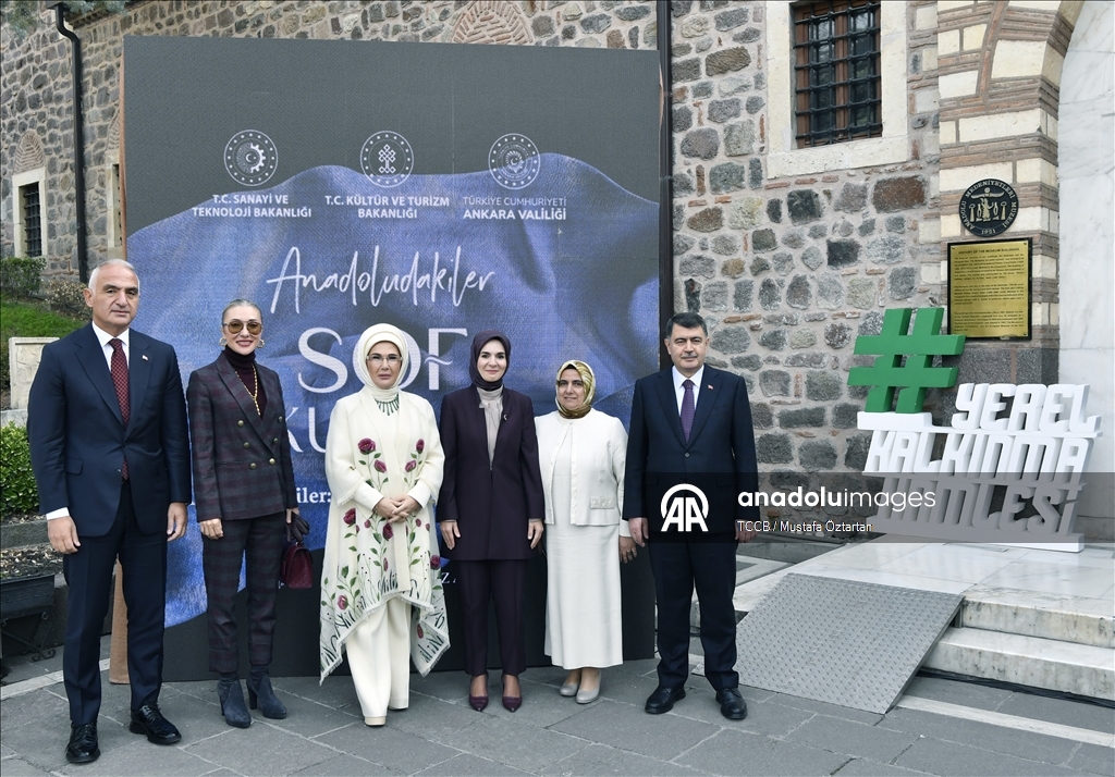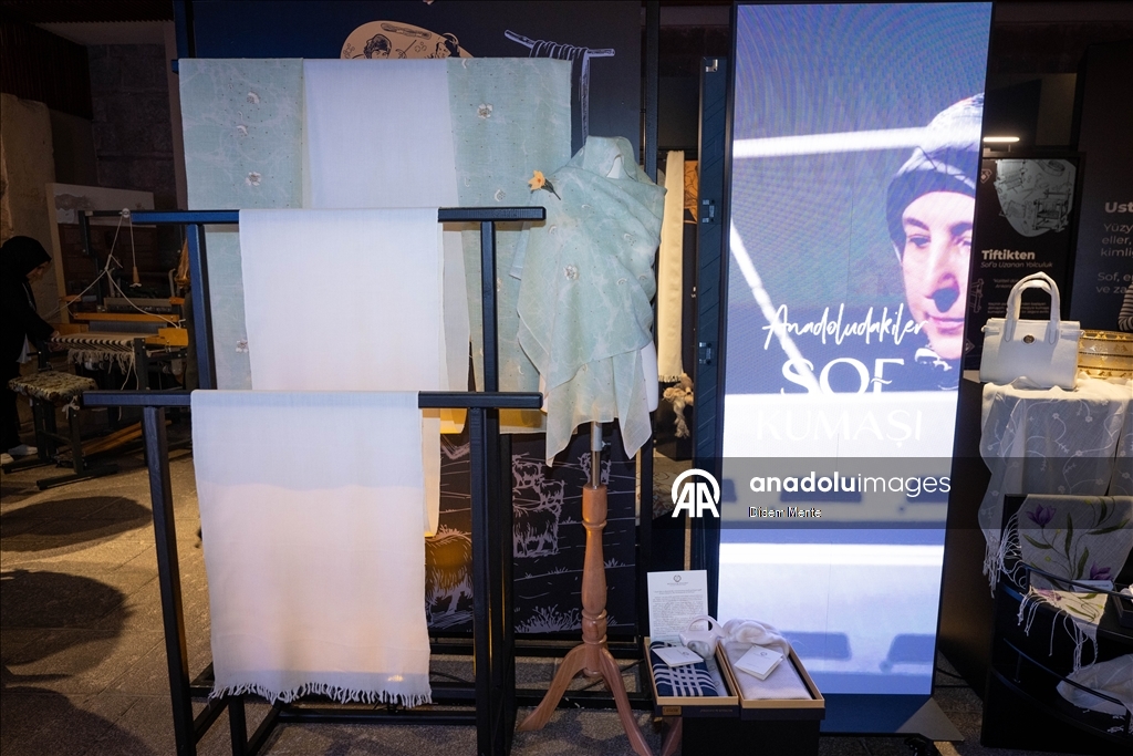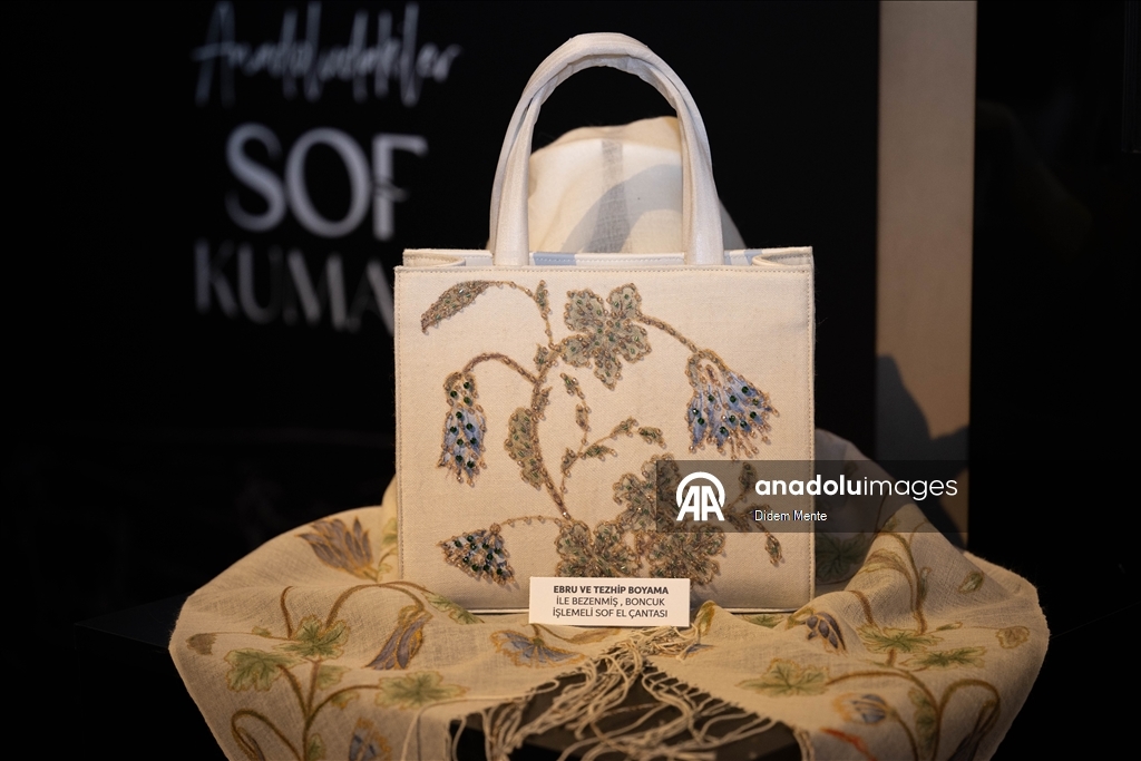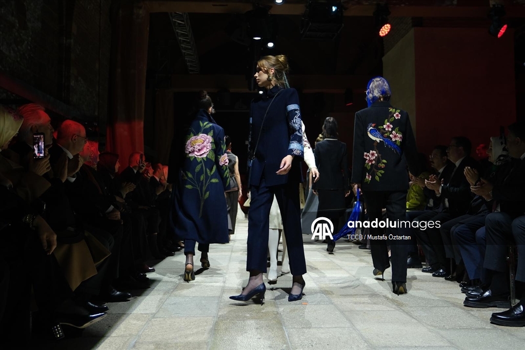 Konuşmaların sonrasında Erdoğan, sunuculuğunu Ebru Akel'in üstlendiği ve sof kumaşından 35 kıyafetin gösteriminin yer aldığı defileyi izledi.TCCB / Mustafa Öztartan