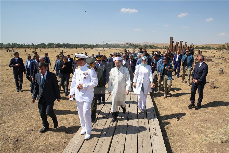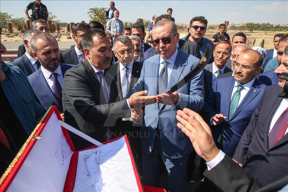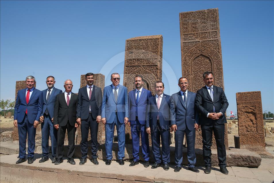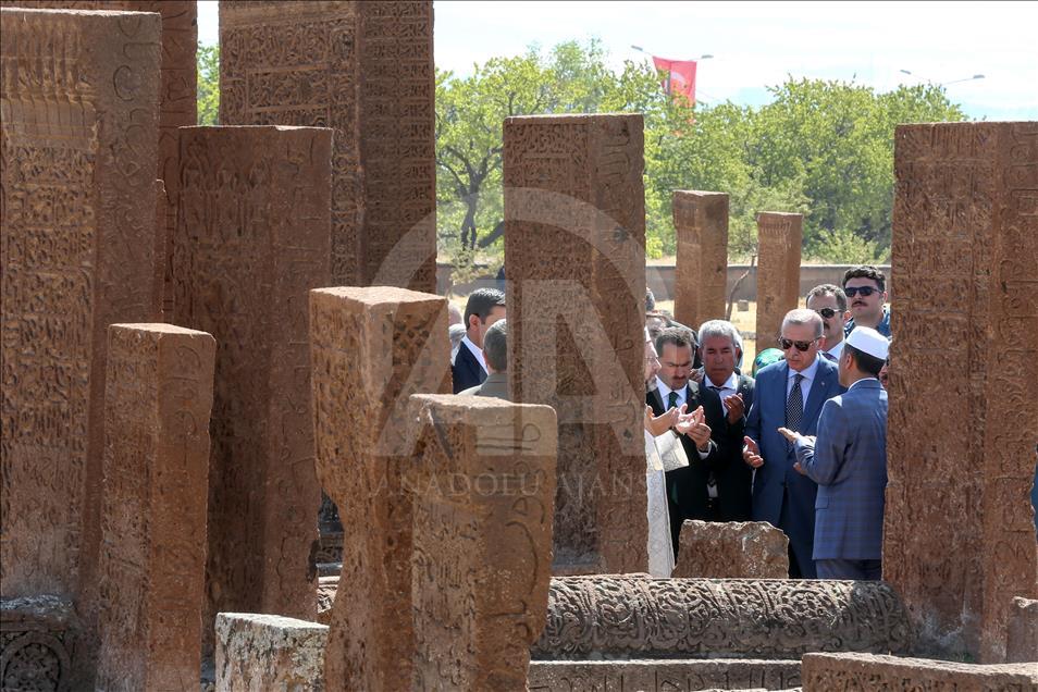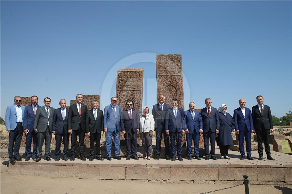 Cumhurbaşkanı Recep Tayyip Erdoğan, Malazgirt Zaferi'nin 947. yıl dönümü kutlama programı kapsamında Bitlis'in Ahlat ilçesindeki Selçuklu Meydan Mezarlığı'nı ziyaret etti. ( Özkan Bilgin - Anadolu Ajansı )Özkan Bilgin