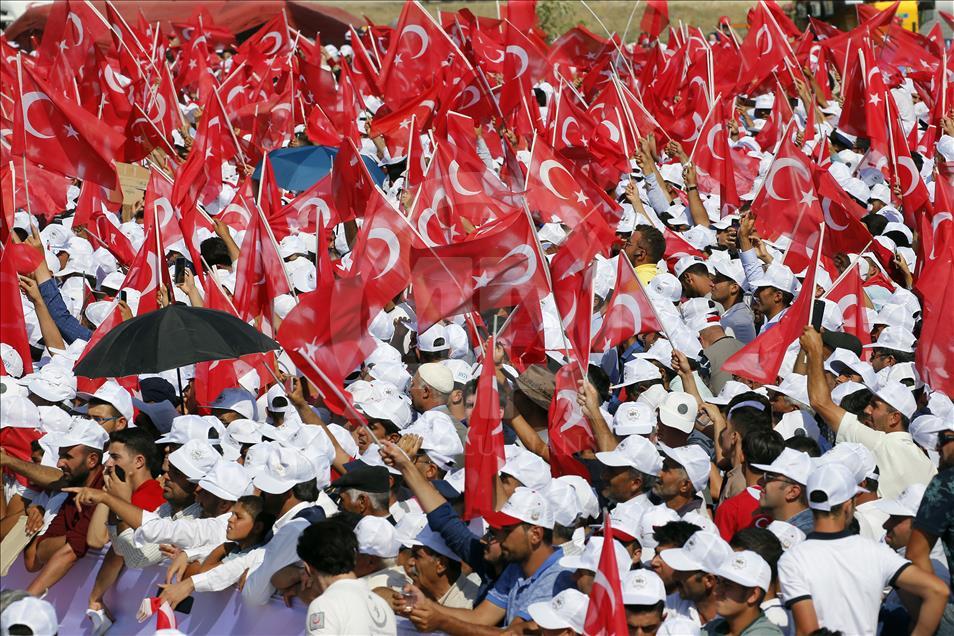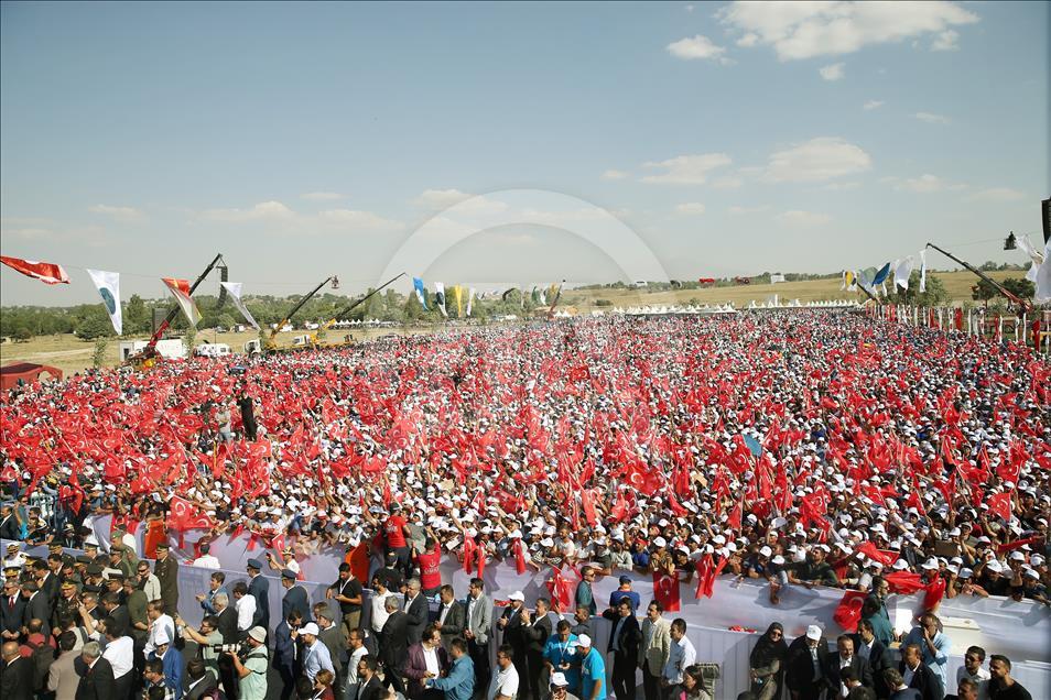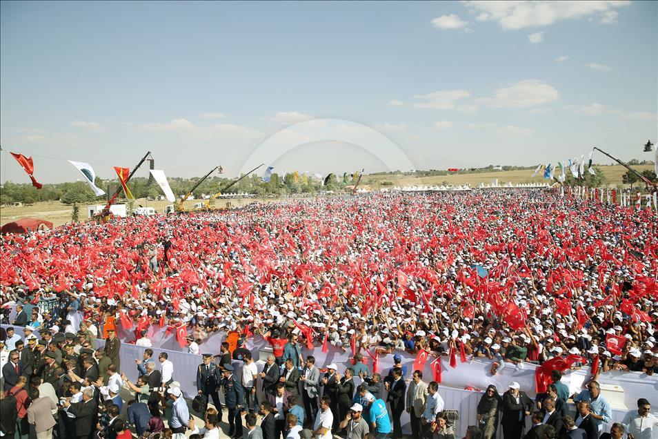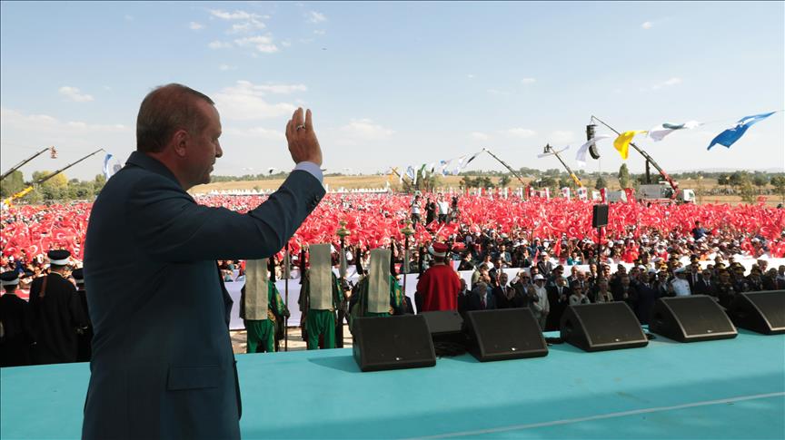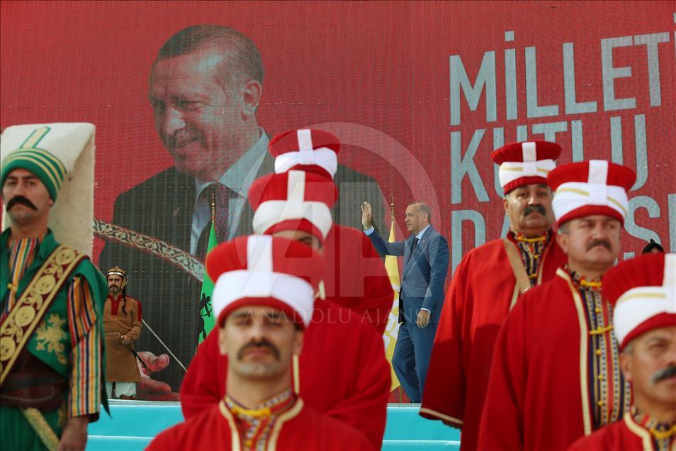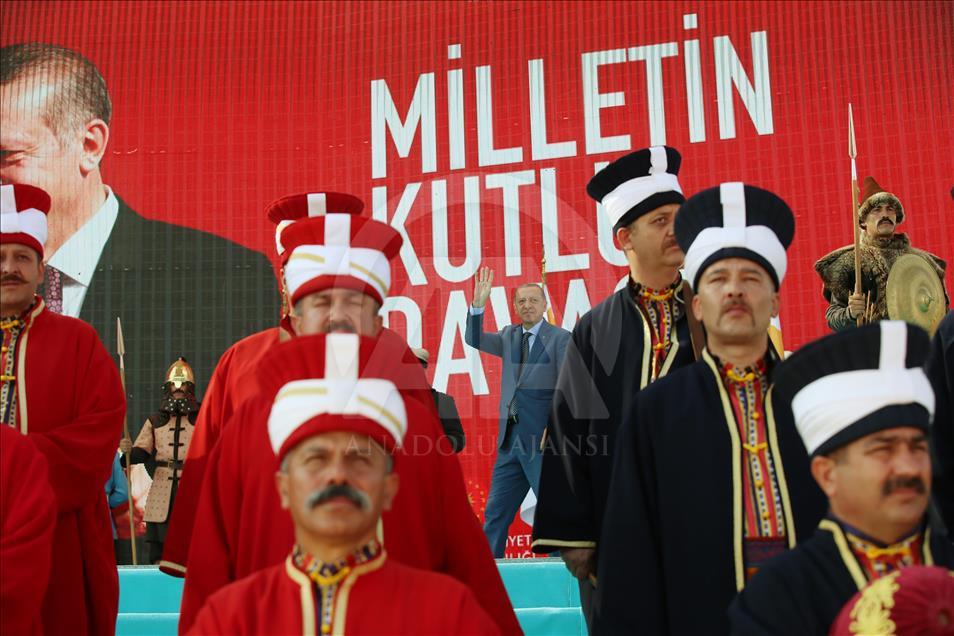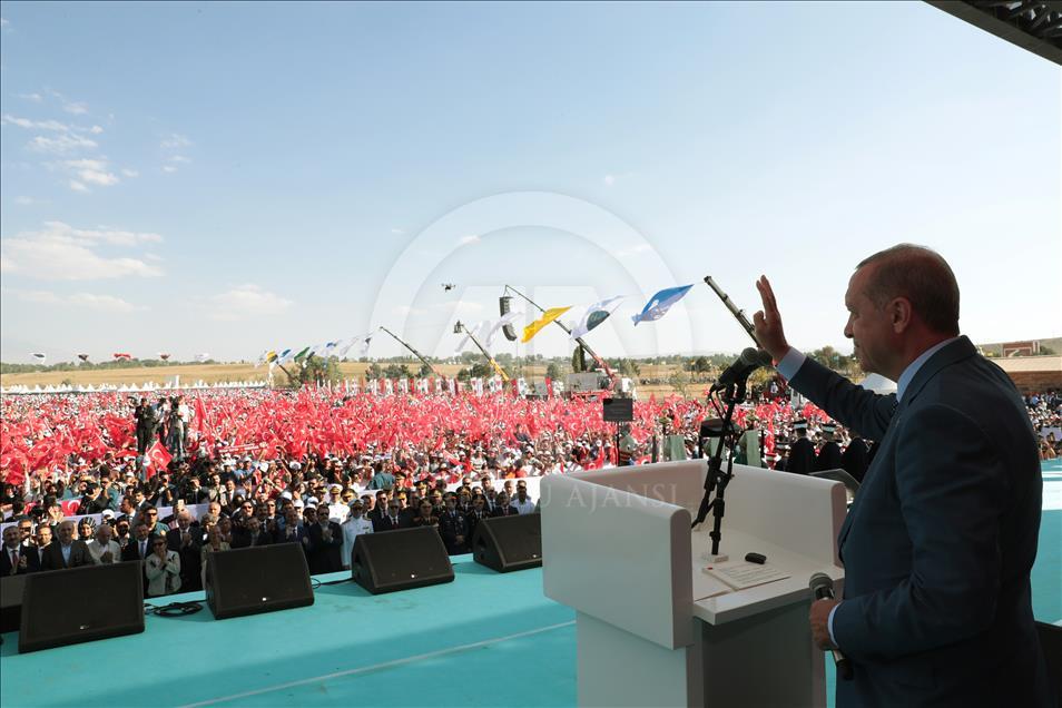 Türkiye Cumhurbaşkanı Recep Tayyip Erdoğan, Muş'ta düzenlenen Malazgirt Zaferi'nin 947. yıl dönümü kutlama programına katılarak vatandaşlara hitap etti. ( Cumhurbaşkanlığı/Murat Çetinmühürdar - Anadolu Ajansı )Cumhurbaşkanlığı/Murat Çetinmühürdar