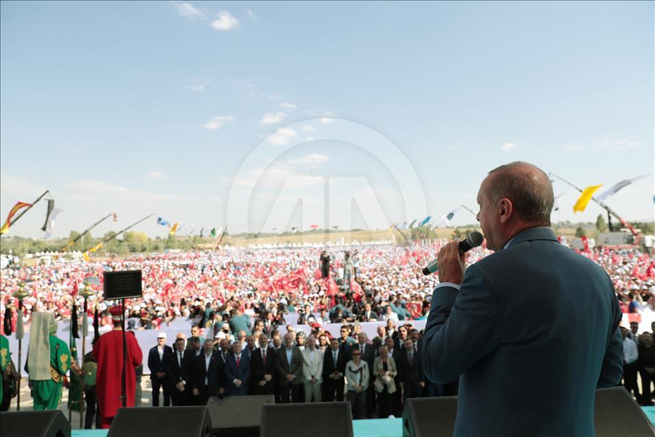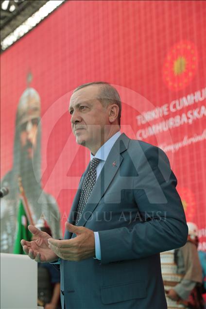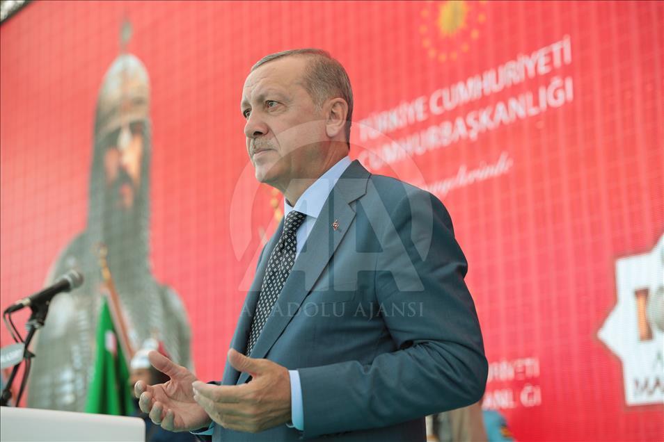 Türkiye Cumhurbaşkanı Recep Tayyip Erdoğan, Malazgirt'te gerçekleştirilen "Anadolu'nun Fethi Malazgirt 1071 Anma Programı"na katılarak bir konuşma yaptı. ( Murat Kula - Anadolu Ajansı )Murat Kula