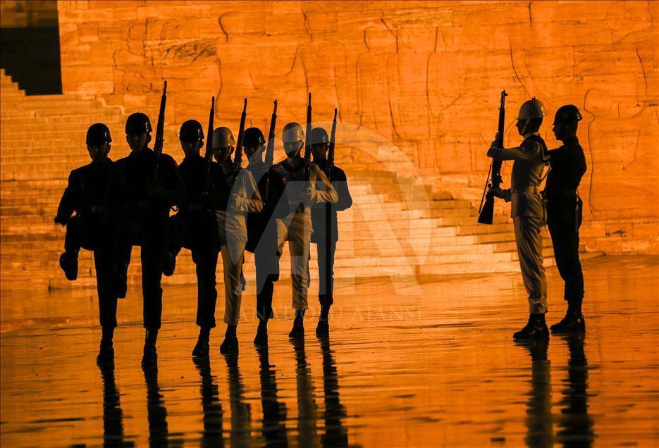 Anıtkabir Komutanlığı, Anıtkabir Derneği ve Anadolu Fotoğraf Derneği’nin işbirliği ile Anıtkabir'de akşam fotoğraf çekimi etkinliği düzenlendi. Ziyaretçilerin alınmadığı etkinlikte yüzlerce fotoğraf sever Anıtkabir'in en güzel fotoğrafını çekebilmek için birbirleri ile yarıştı. Askerler Anıtkabirdeki nöbet değişimi. ( Ahmet İzgi - Anadolu Ajansı )Ahmet İzgi