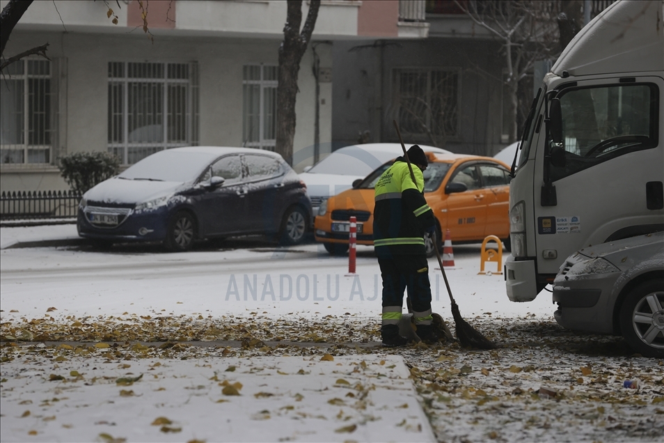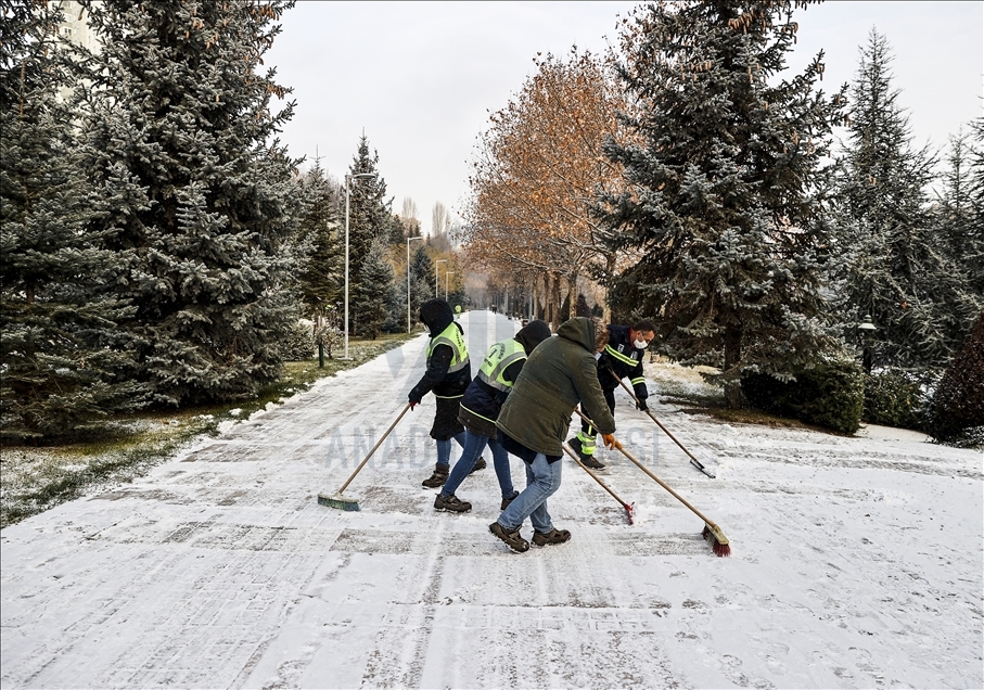 Ankara'da sabah saatlerinde başlayan kar yağışı kenti beyaza bürüdü. Belediye ekipleri park ve yollarda biriken karı temizledi. ( Emin Sansar - Anadolu Ajansı )Emin Sansar