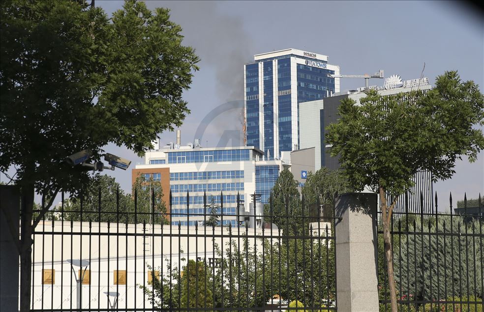 Başkentte Söğütözü Mahallesi'ndeki bir iş merkezinde çıkan yangın itfaiye ekipleri tarafından kontrol altına alınmaya çalışılıyor. ( Doğukan Keskinkılıç - Anadolu Ajansı )Doğukan Keskinkılıç