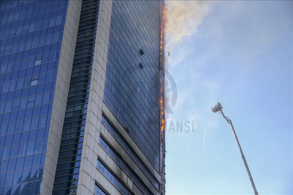 Başkentte Söğütözü Mahallesi'ndeki bir iş merkezinde çıkan yangın itfaiye ekipleri tarafından kontrol altına alınmaya çalışılıyor. "Via Tower" iş merkezinin alt katlarında henüz belirlenemeyen bir nedenle yangın çıktı. Kısa sürede büyüyen alevler, dış cepheye ve bazı katlara da sıçradı. ( Doğukan Keskinkılıç - Anadolu Ajansı )Doğukan Keskinkılıç