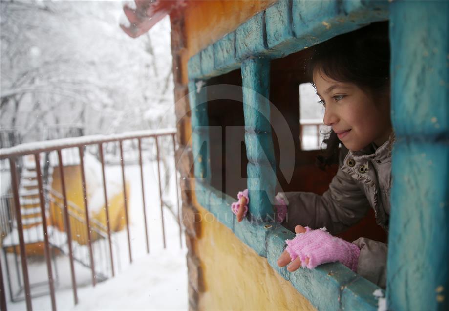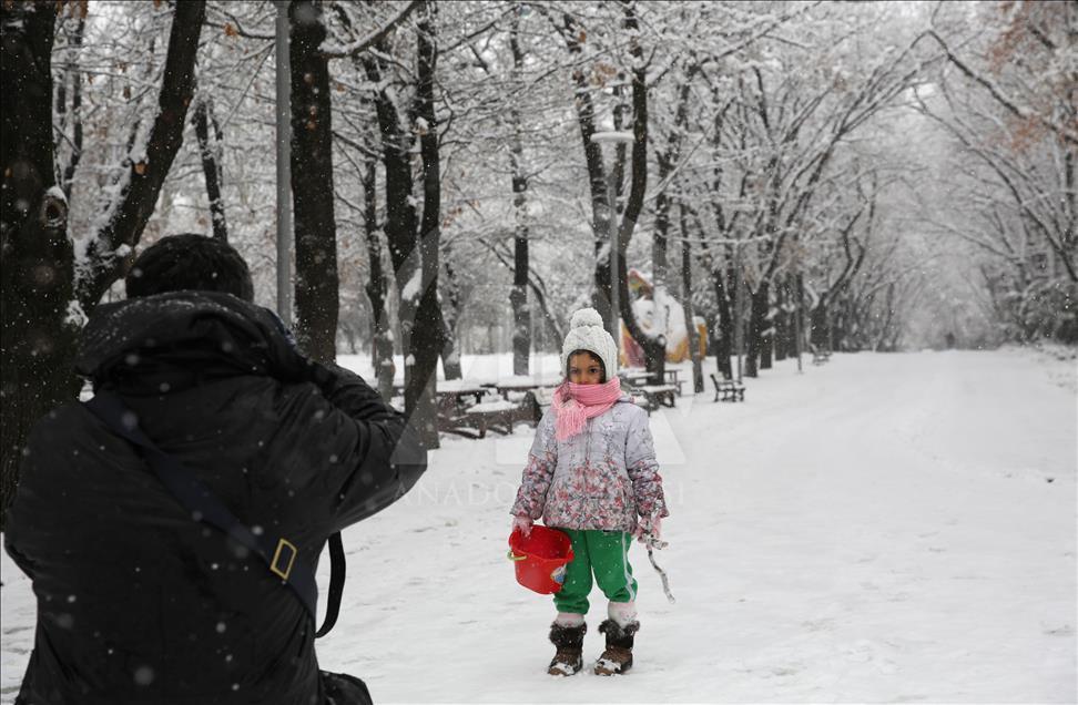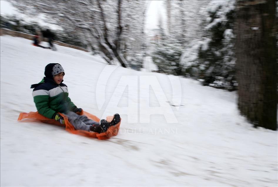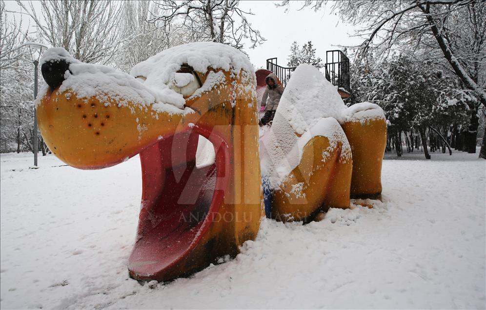 Ankara'da iki gündür etkisini sürdüren kar yağışı kenti beyaza bürüdü. Parkta çocuklar karın tadını çıkardı. ( Raşit Aydoğan - Anadolu Ajansı )Raşit Aydoğan