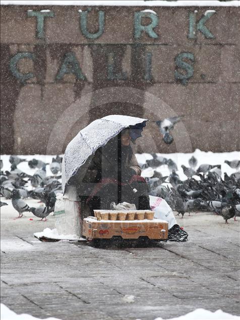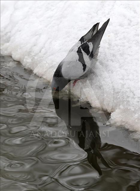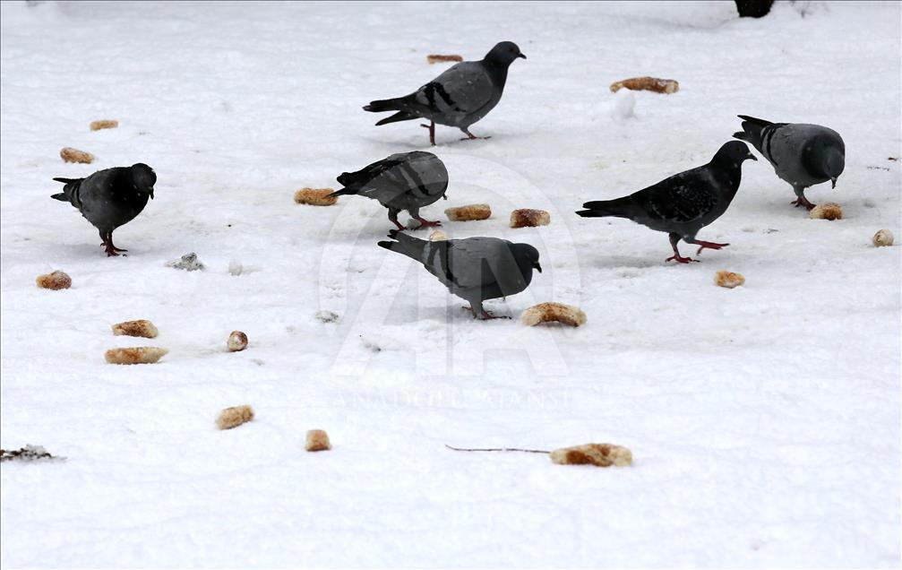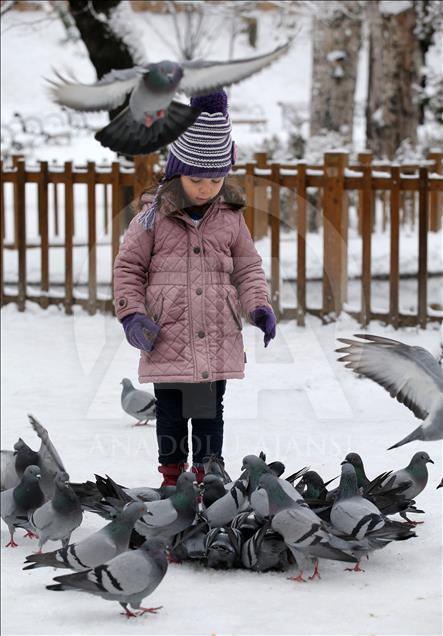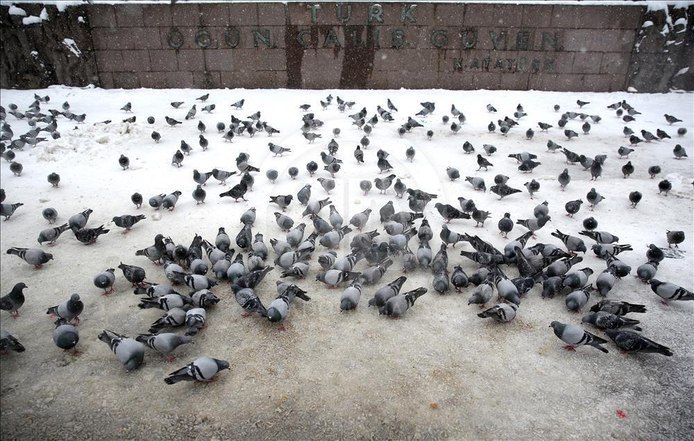 Ankara'da iki gündür etkisini sürdüren kar yağışı kenti beyaza bürüdü. Güvenpark'ta güvercinler kendilerine yem aradı. ( Raşit Aydoğan - Anadolu Ajansı )Raşit Aydoğan