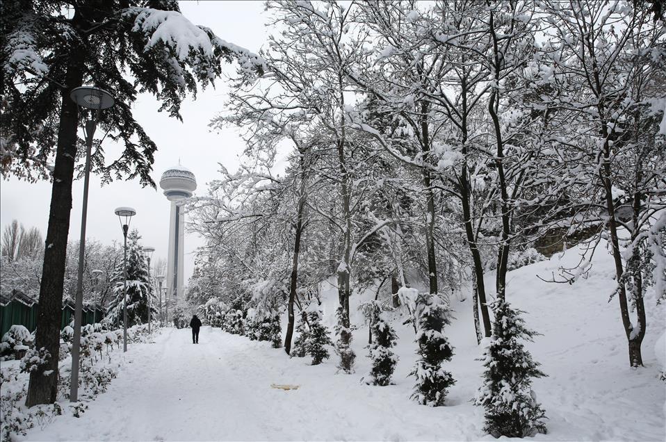 Ankara'da iki gündür etkisini sürdüren kar yağışı kenti beyaza bürüdü. Başkentin simgelerinden Atakule ve Botanik parkta vatandaşlar yürüyüşe çıktı. ( Raşit Aydoğan - Anadolu Ajansı )Raşit Aydoğan