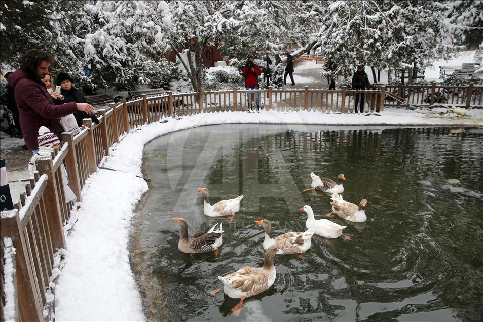 Ankara'da iki gündür etkisini sürdüren kar yağışı kenti beyaza bürüdü. Kar yağışıyla birlikte Kuğulu Park'ta güzel görüntüler ortaya çıktı. Vatandaşlar parkta bulunan hayvanları besledi. ( Raşit Aydoğan - Anadolu Ajansı )Raşit Aydoğan