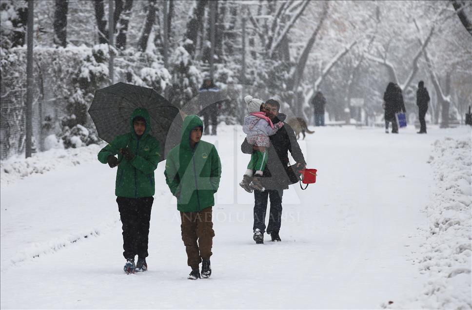 Ankara'da iki gündür etkisini sürdüren kar yağışı kenti beyaza bürüdü.