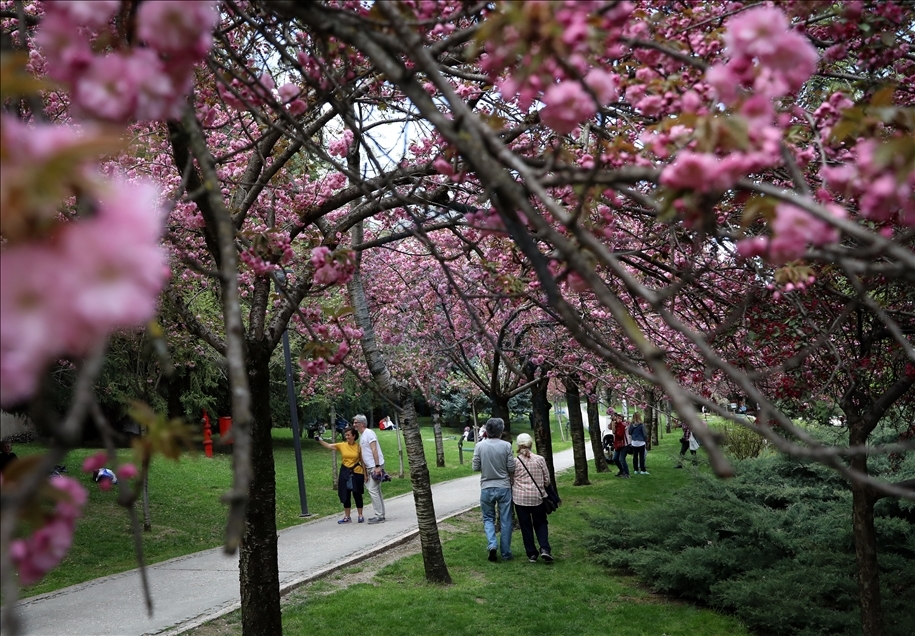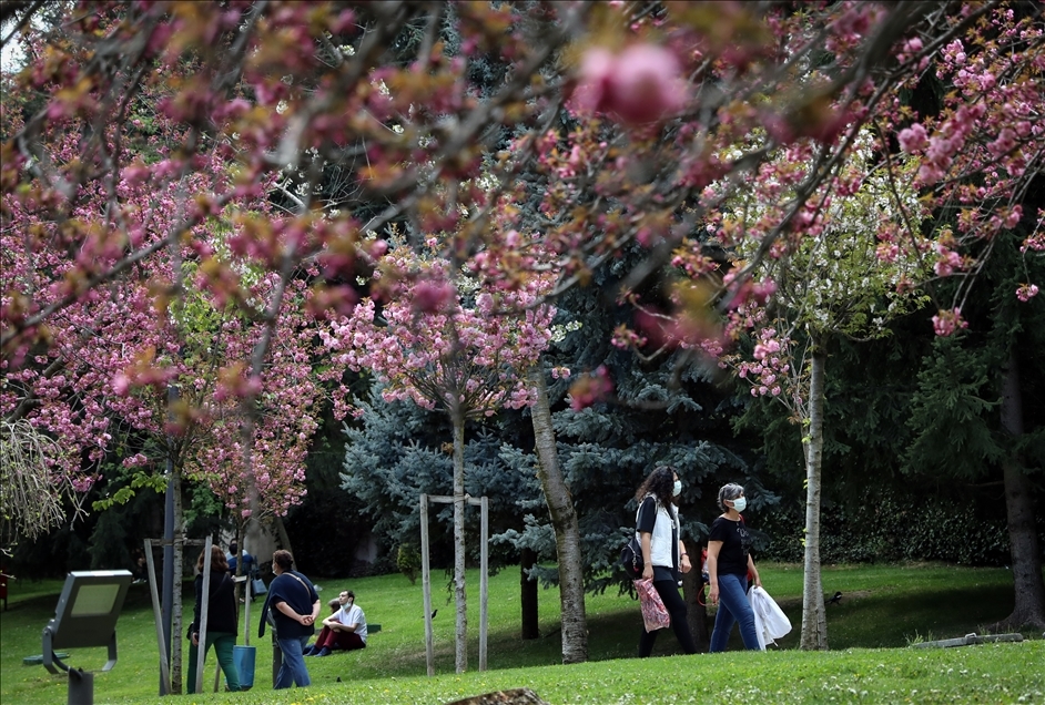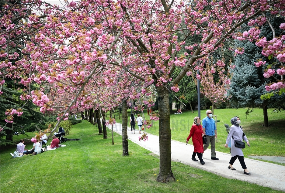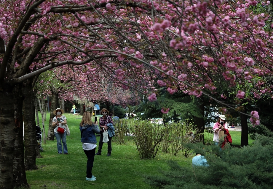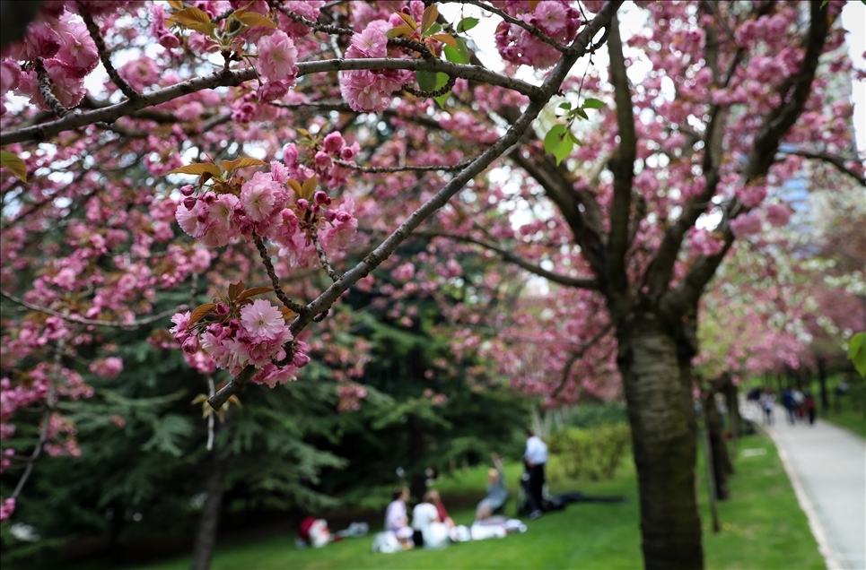 Başkentte baharın gelmesiyle Dikmen Vadisinde çiçek açan Japon Kirazı (Sakura) ağaçları güzel görüntüler oluşturdu.