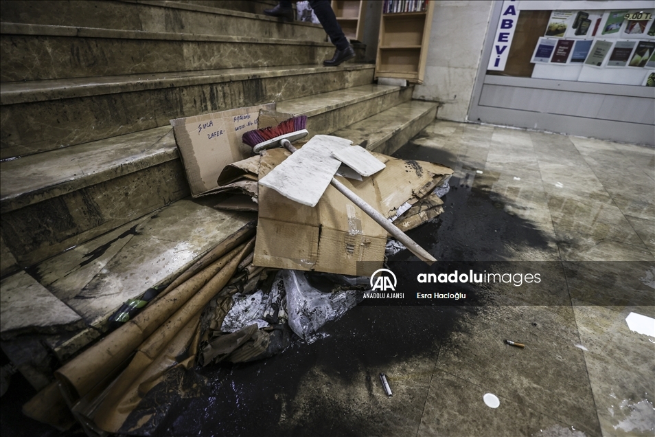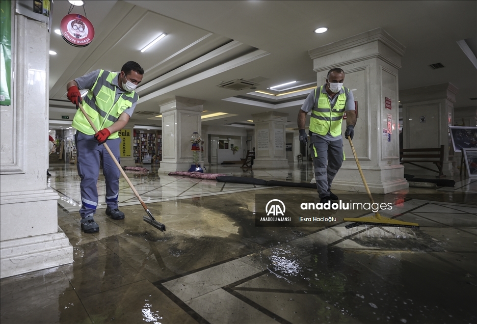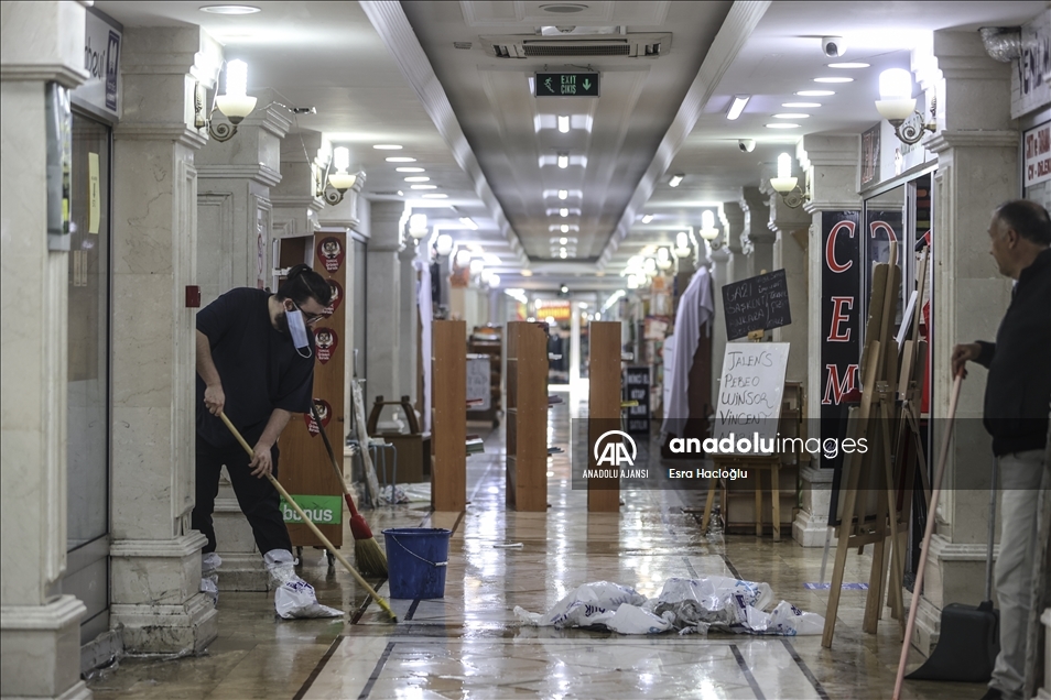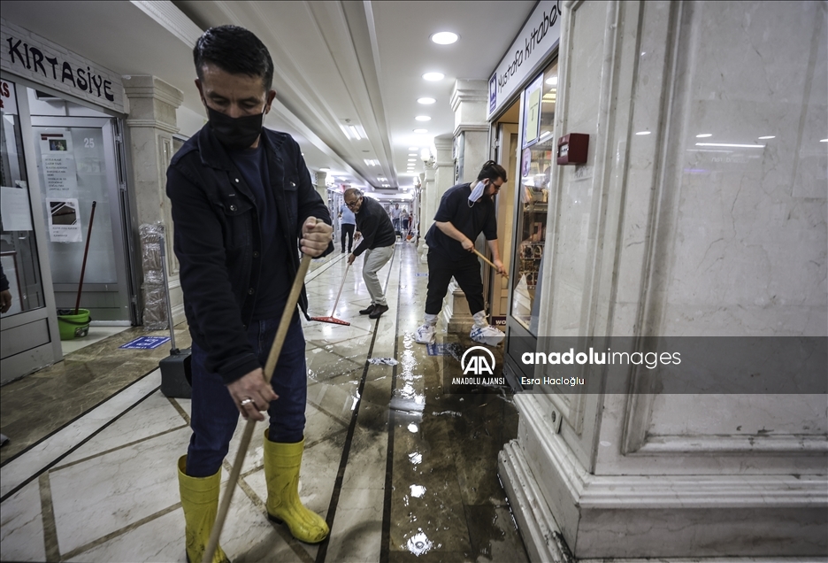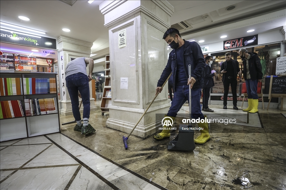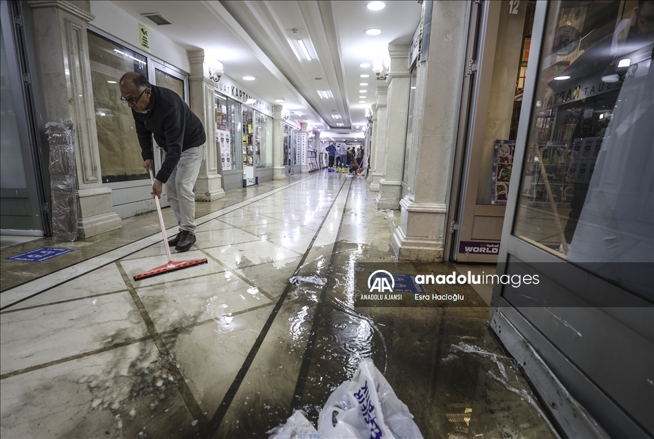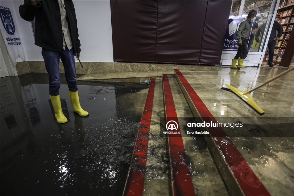 Ankara'nın çeşitli bölgelerinde öğleden sonra etkili olan sağanak nedeniyle Sıhhiye'de bulunan Zafer Çarşısı'nı su bastı. Çarşıdaki dükkan sahibi ve belediye çalışanları, içeride biriken suyu temizledi. ( Esra Hacioğlu - Anadolu Ajansı )Esra Hacioğlu