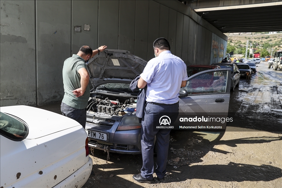 Ankara'nın Mamak ilçesinde etkili olan sağanak yağış vatandaşlara zor anlar yaşattı. Bazı araç ve iş yerleri sel sularından zarar gördü. ( Muhammed Selim Korkutata - Anadolu Ajansı )Muhammed Selim Korkutata