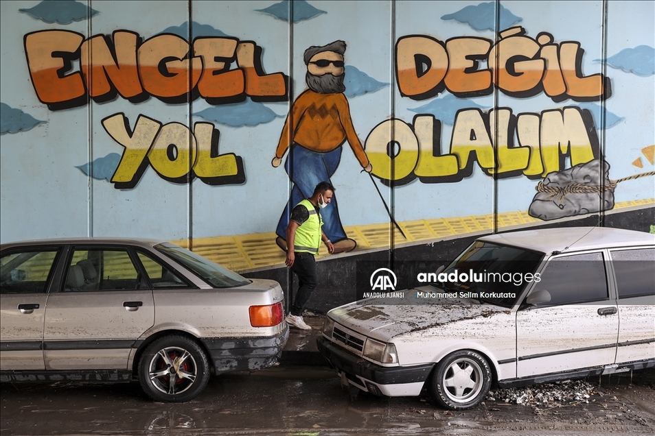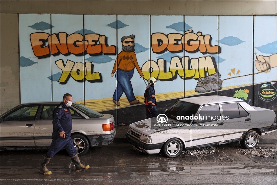 Ankara'nın Mamak ilçesinde etkili olan sağanak yağış vatandaşlara zor anlar yaşattı. Bazı araç ve iş yerleri sel sularından zarar görürken, ekipler bölgede çalışma başlattı. ( Muhammed Selim Korkutata - Anadolu Ajansı )Muhammed Selim Korkutata