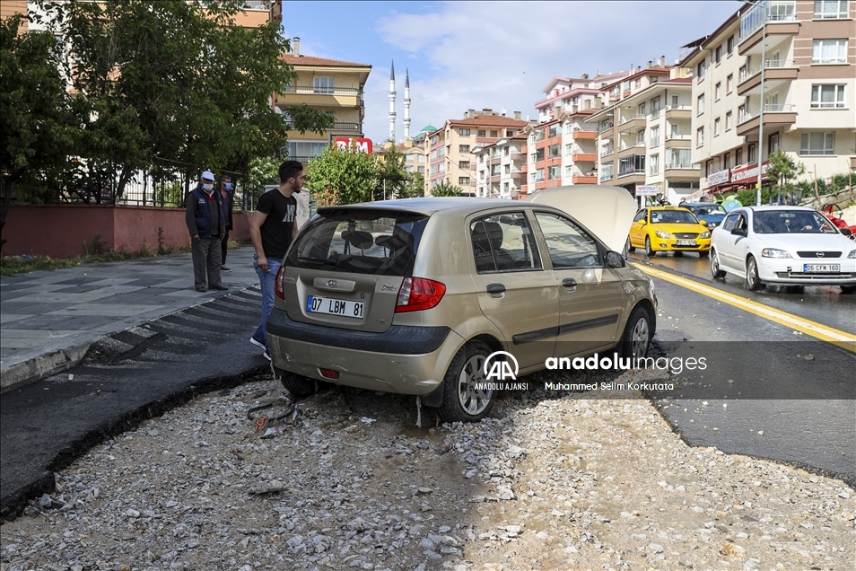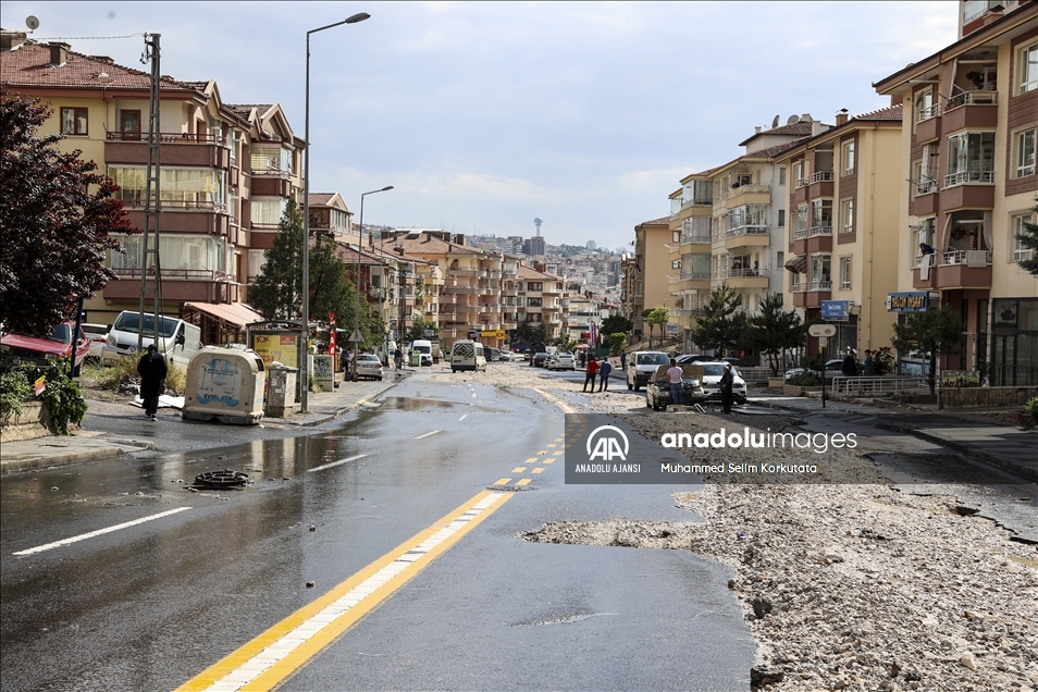 Ankara'nın Mamak ilçesinde etkili olan sağanak yağış vatandaşlara zor anlar yaşattı. Bazı araç ve iş yerleri sel sularından zarar gördü.