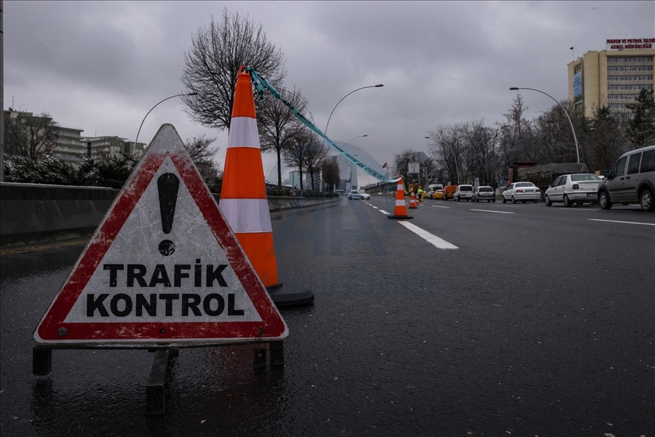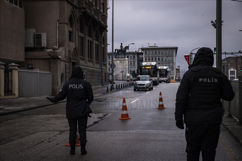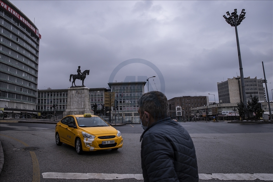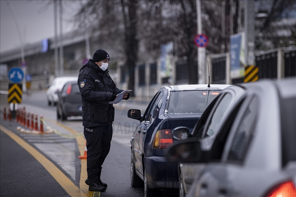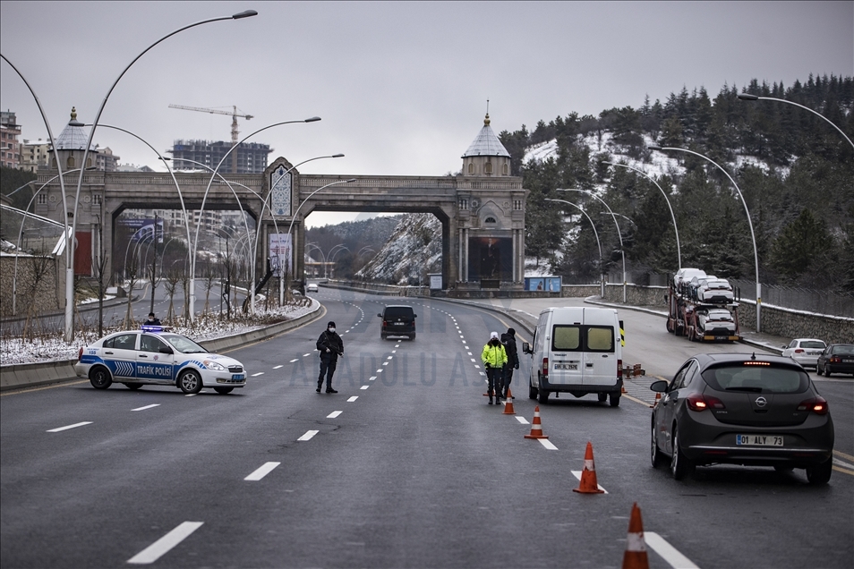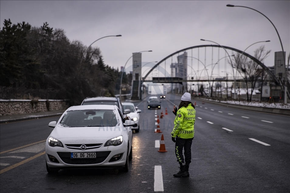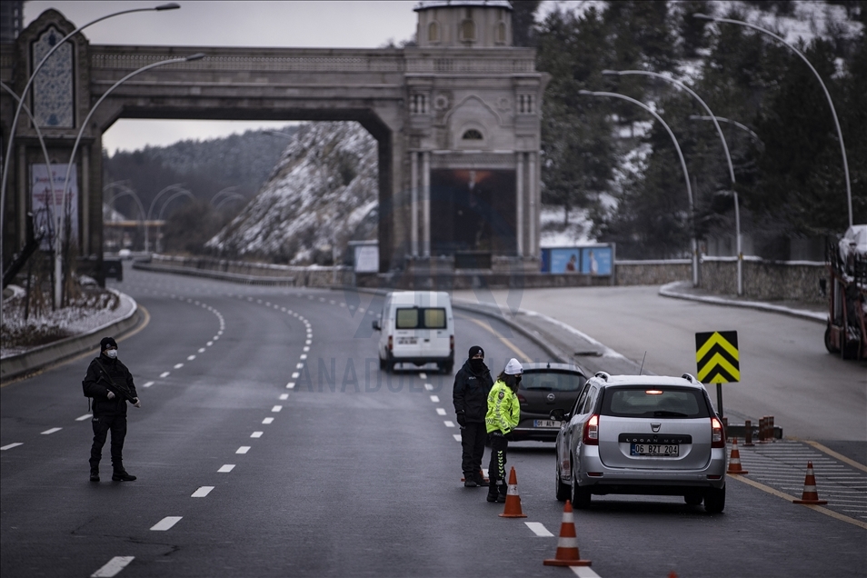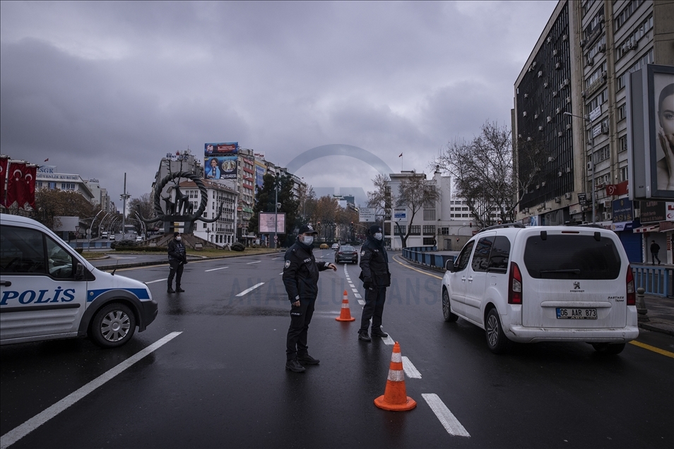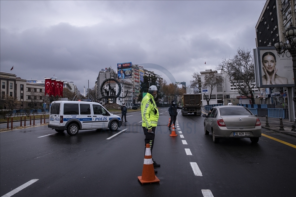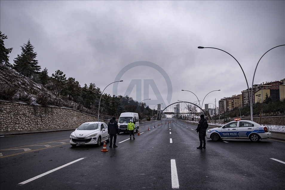 Yeni tip koronavirüs (Kovid-19) salgınının önlenmesine yönelik ülke genelinde uygulanan sokağa çıkma kısıtlaması kapsamında Ankara'da sessizliğin hakim olduğu gözlendi. Kısıtlamalar kapsamında polis ekipleri Konya Yolu'nda denetim yaptı.