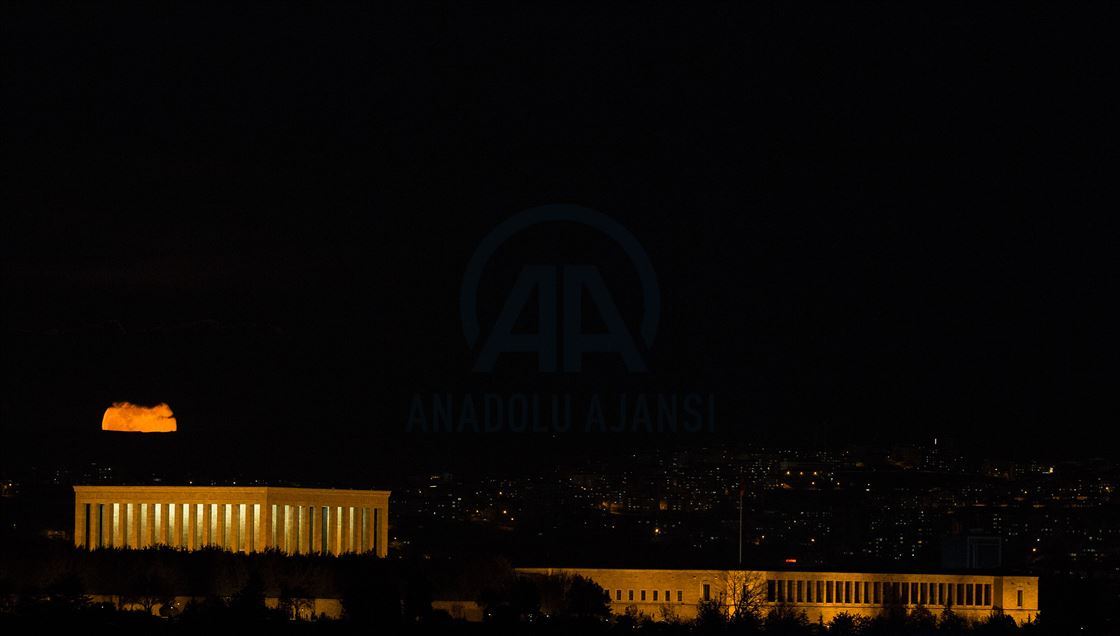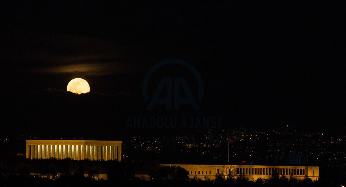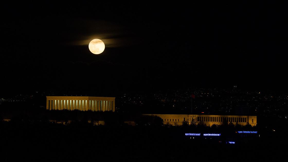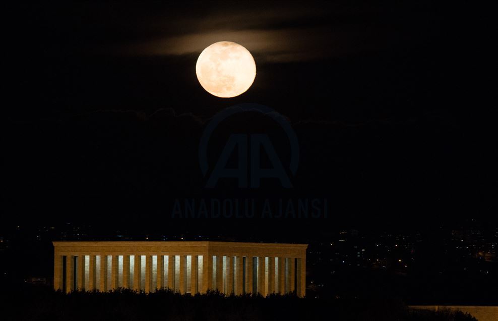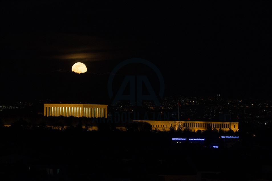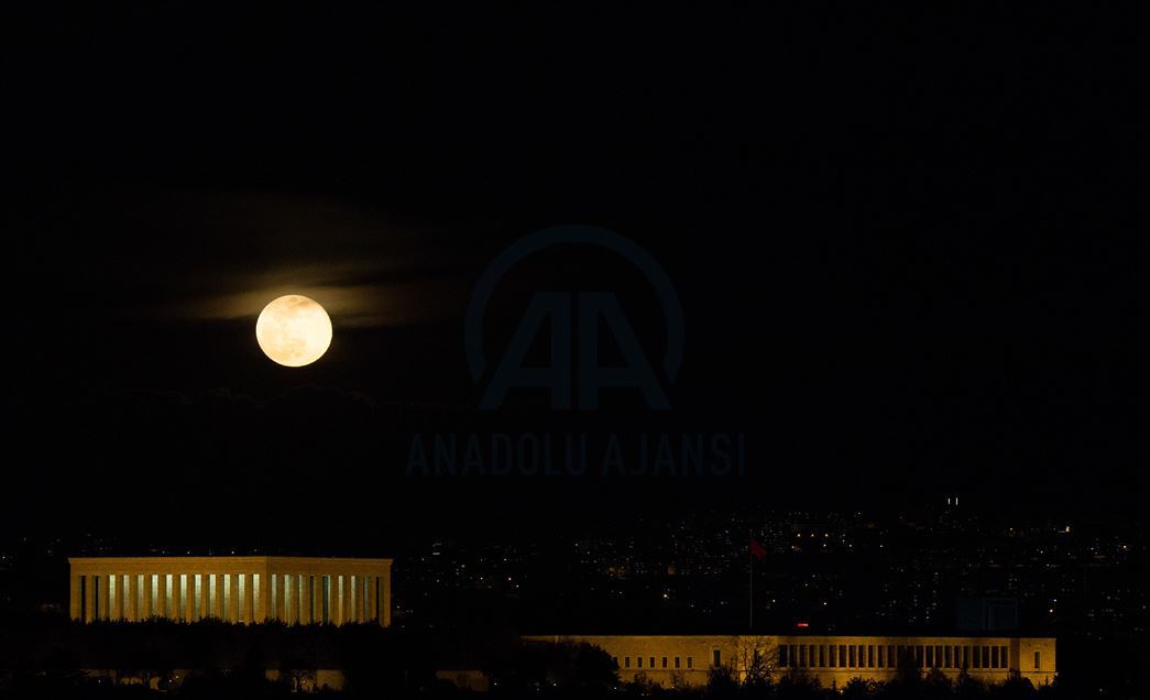 Ay'ın Dünya'ya en yakın konumda olduğu, normalden daha parlak ve büyük gözlemlendiği "Süper Ay" Ankara'da Anıtkabir ile birlikte güzel görüntü oluşturdu.