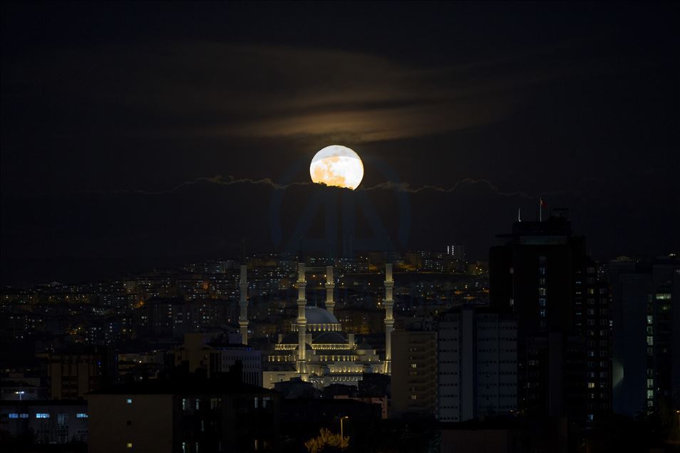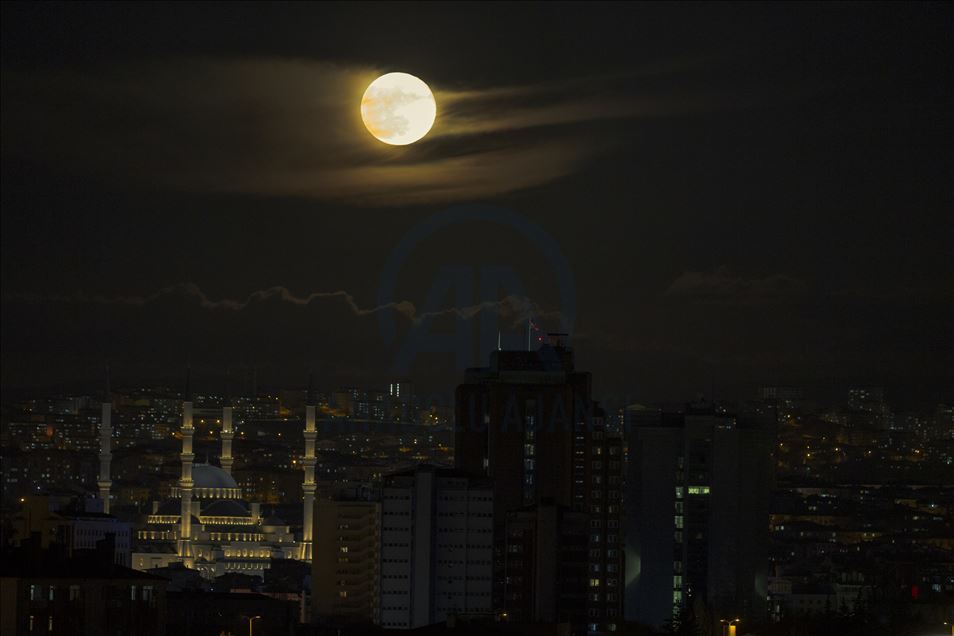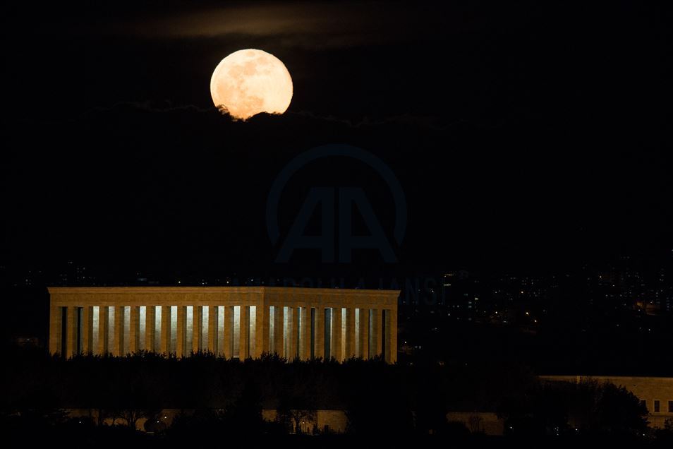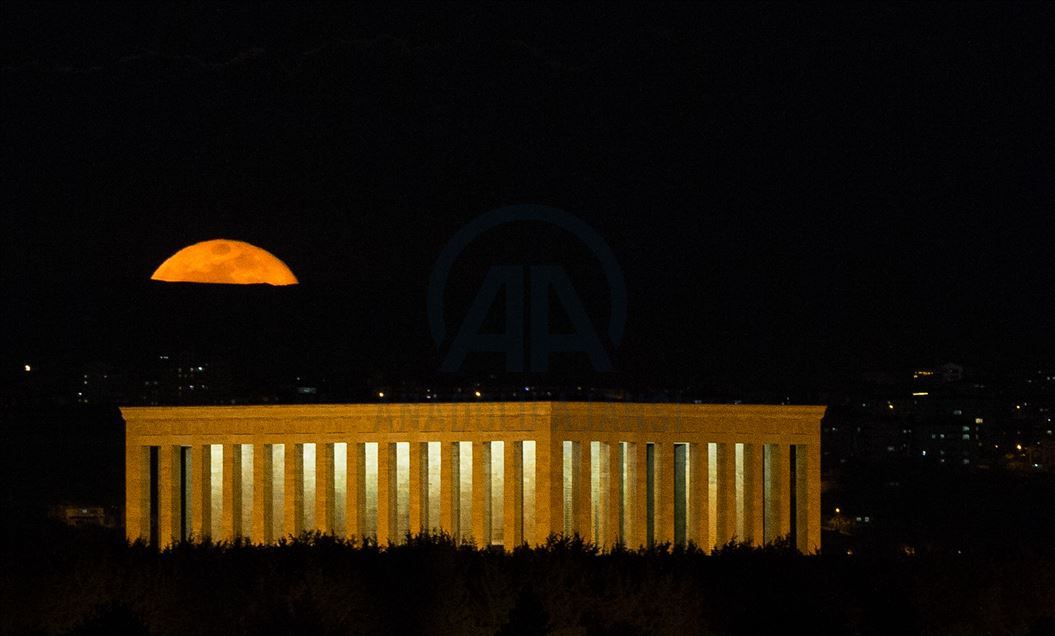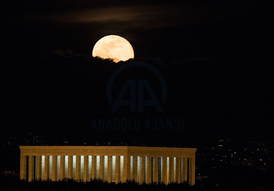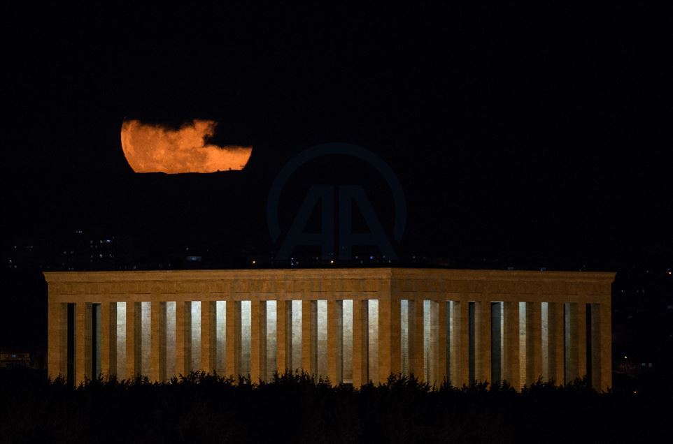 Ay'ın Dünya'ya en yakın konumda olduğu, normalden daha parlak ve büyük gözlemlendiği "Süper Ay" Ankara'da Anıtkabir ile birlikte güzel görüntü oluşturdu.
