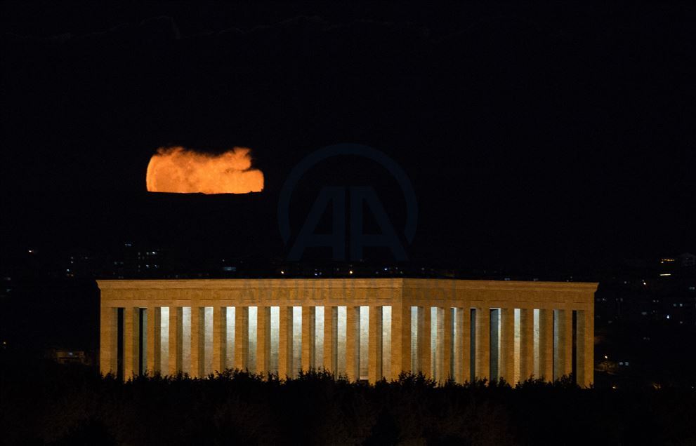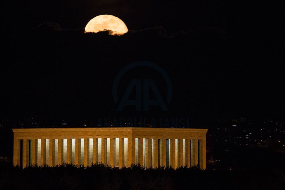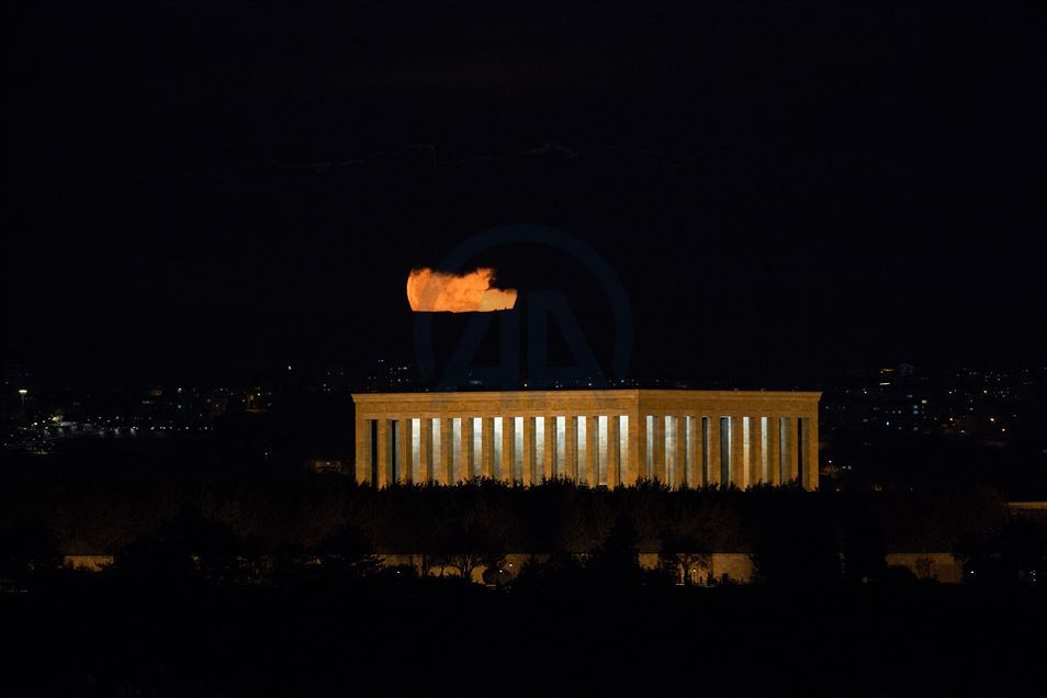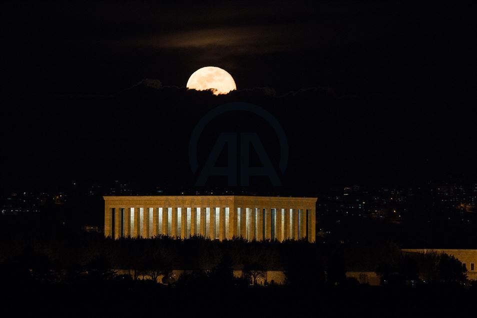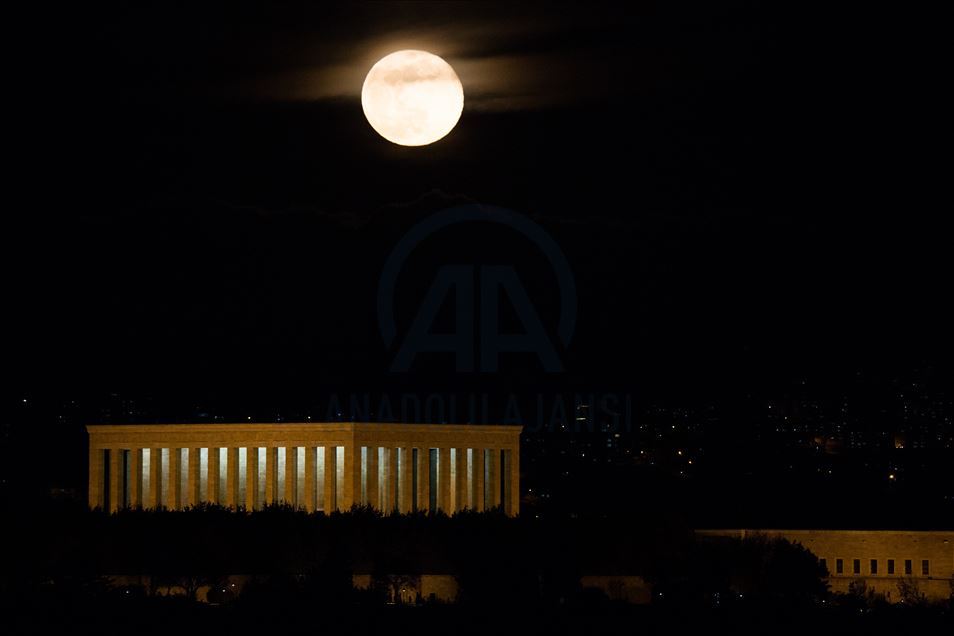 Ay'ın Dünya'ya en yakın konumda olduğu, normalden daha parlak ve büyük gözlemlendiği "Süper Ay" Ankara'da Anıtkabir ile birlikte güzel görüntü oluşturdu. ( Mehmet Ali Özcan - Anadolu Ajansı )Mehmet Ali Özcan