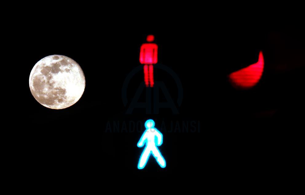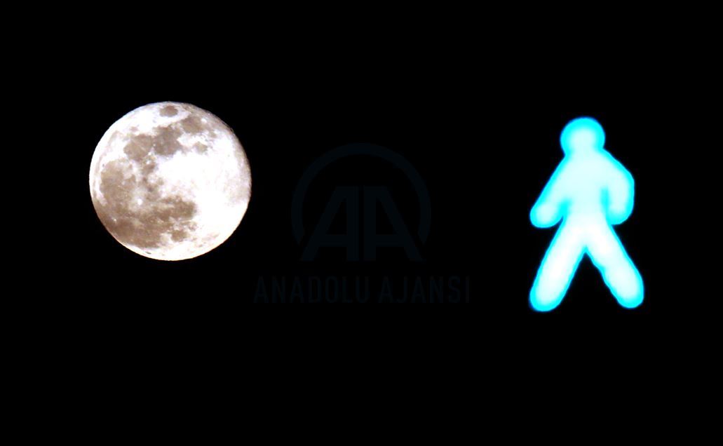 Ay'ın Dünya'ya en yakın konumda olduğu, normalden daha parlak ve büyük gözlemlendiği "Süper Ay" Ankara'dan da gözlendi. Trafik lambası ile birlikte dolunay güzel görüntü oluşturdu. ( Raşit Aydoğan - Anadolu Ajansı )Raşit Aydoğan