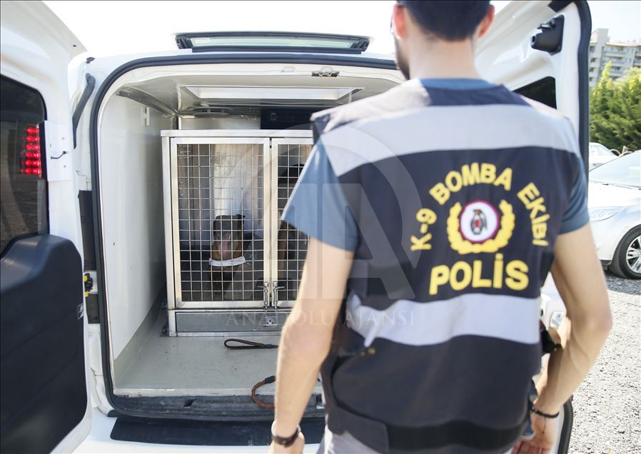 Ankara Emniyet Müdürlüğü Bomba İmha ve İnceleme Şube Müdürlüğü bünyesinde görev alan 8 dedektör bomba arama köpeği, başkentlilerin güvenliği için bomba uzmanı eğiticileriyle 24 saat mesai yapıyor. ( Doğukan Keskinkılıç - Anadolu Ajansı )Doğukan Keskinkılıç