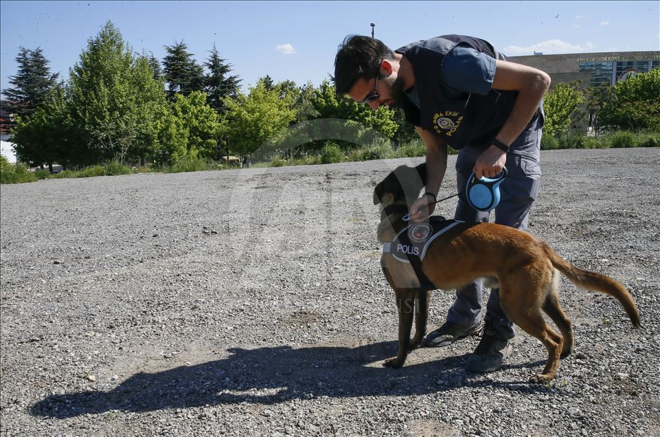 Ankara Emniyet Müdürlüğü Bomba İmha ve İnceleme Şube Müdürlüğü bünyesinde görev alan 8 dedektör bomba arama köpeği, başkentlilerin güvenliği için bomba uzmanı eğiticileriyle 24 saat mesai yapıyor.