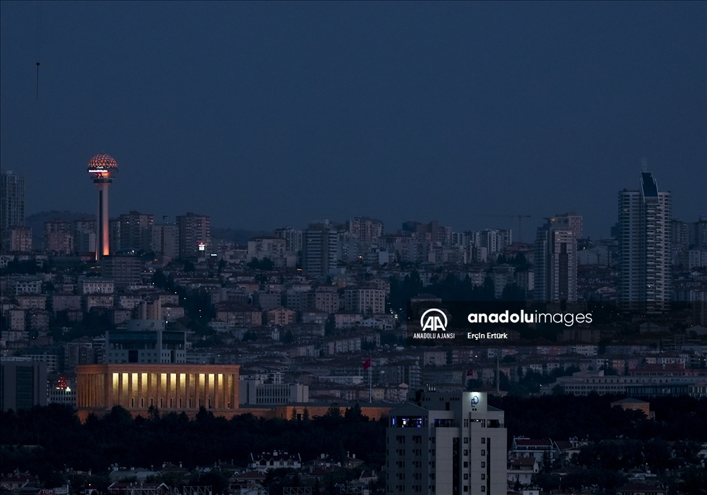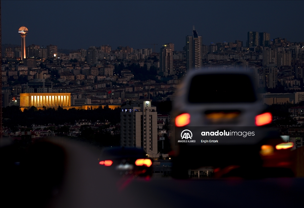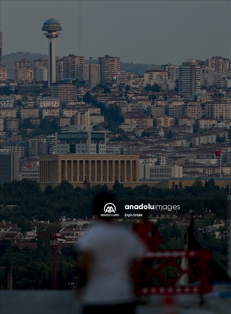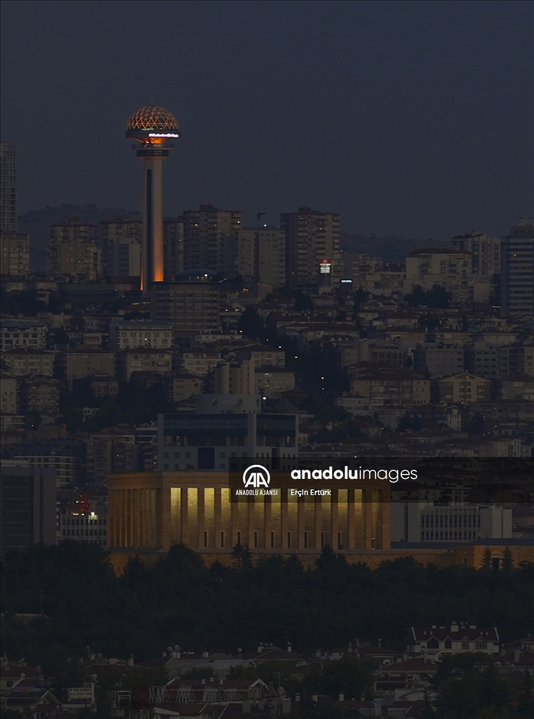 Ankara'nın simgeleri Anıtkabir ve Atakule gün batımında aynı karede objektiflere yansıdı.