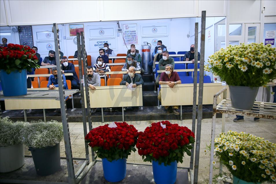Tüm dünyayı etkisi altına alan yeni tip koronavirüs (Kovid-19) salgınından etkilenen sektörlerden biri olan çiçek üreticileri, Anneler Günü ile artan talebi karşılamak için mesai yapıyor. Türkiye'nin önemli kesme çiçek üretim merkezlerinden İzmir'in Menderes ilçesinde hafta sonu kutlanacak Anneler Günü için çiçek seralarında hummalı çalışma gözleniyor. Seralardan toplanan çiçekler, Flora Çiçekçilik Üretim ve Pazarlama Kooperatifi İzmir Borsasında satışa sunuluyor. Yoğunluğun yaşandığı borsada koronavirüs kurallarına riayet ediliyor. ( Halil Fidan - Anadolu Ajansı )Halil Fidan