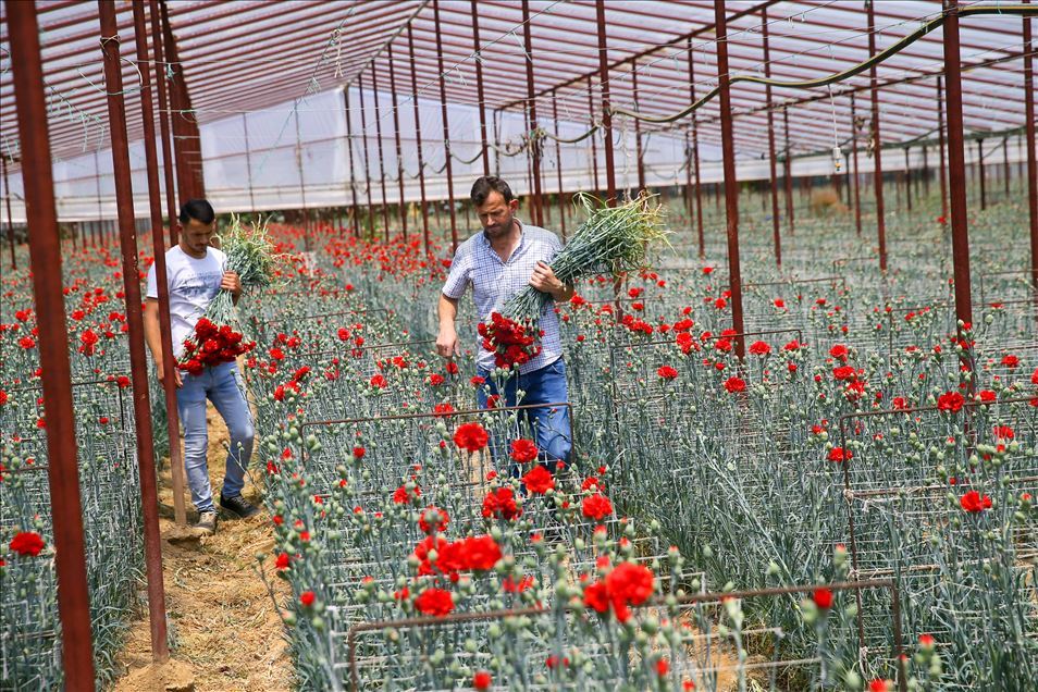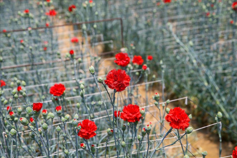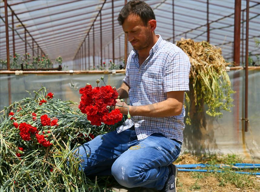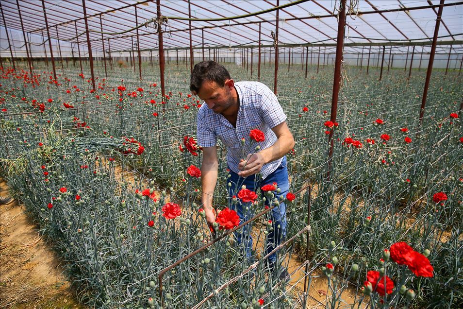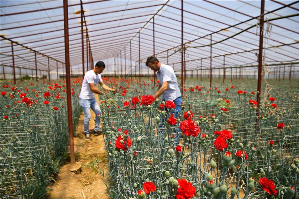 Tüm dünyayı etkisi altına alan yeni tip koronavirüs (Kovid-19) salgınından etkilenen sektörlerden biri olan çiçek üreticileri, Anneler Günü ile artan talebi karşılamak için mesai yapıyor. Türkiye'nin önemli kesme çiçek üretim merkezlerinden İzmir'in Menderes ilçesinde hafta sonu kutlanacak Anneler Günü için çiçek seralarında hummalı çalışma gözleniyor. Karanfil üreticisi Onur İmza, AA muhabirine açıklamada bulundu. ( Halil Fidan - Anadolu Ajansı )Halil Fidan