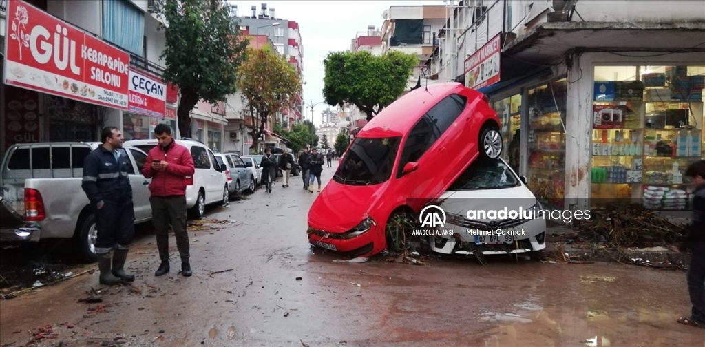 Antalya'nın Kumluca ilçesinde kuvvetli yağışın ardından derelerin taşması sonucu çok sayıda ev ve iş yerini su bastı. İlçe merkezinde sel nedeniyle bazı araçlar sürüklendi. ( Mehmet Çakmak - Anadolu Ajansı )Mehmet Çakmak