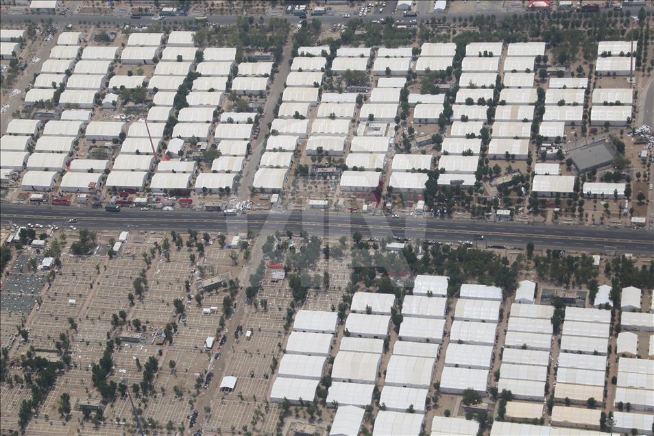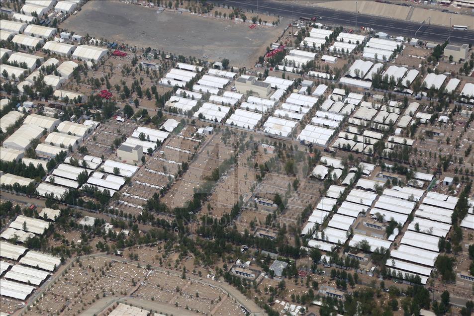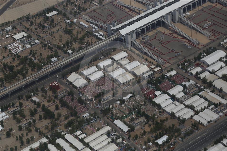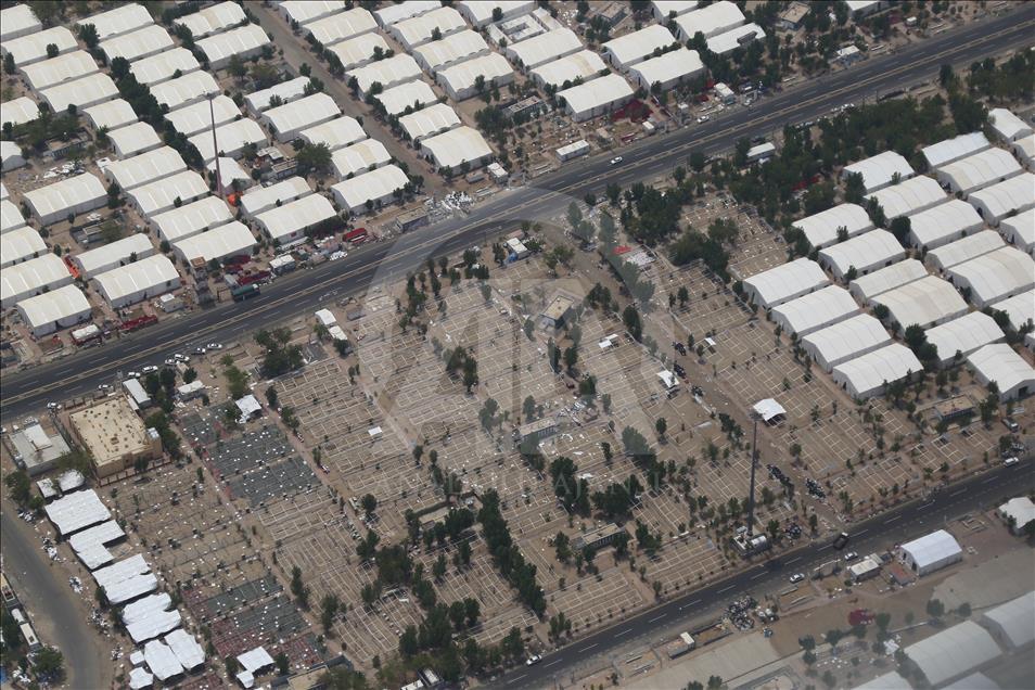 Hacıların Arafat'ta kullandıkları çadırlar, vakfe sonrası hacıların Mina'ya intikallerinin ardından sökülmeye başlandı. AA ekibi, temizlik ve çadırların söküm işleminin devam ettiği Arafat'ı havadan görüntüledi. Arife günü hacı adaylarının çıkmak için yarıştığı Rahmet Tepesi'nin, boş olduğu görüldü. ( Ramazan Turgut - Anadolu Ajansı )Ramazan Turgut