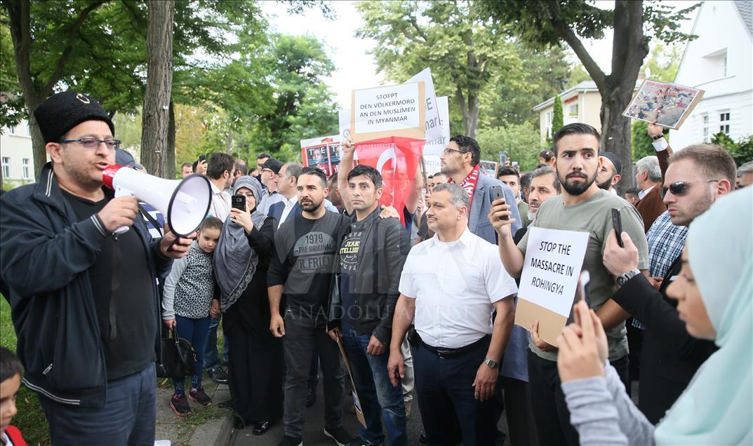 Arakan'daki Müslümanlara uygulanan katliam, Almanya'nın başkenti Berlin'deki Myanmar Büyükelçiliği önünde protesto edildi.