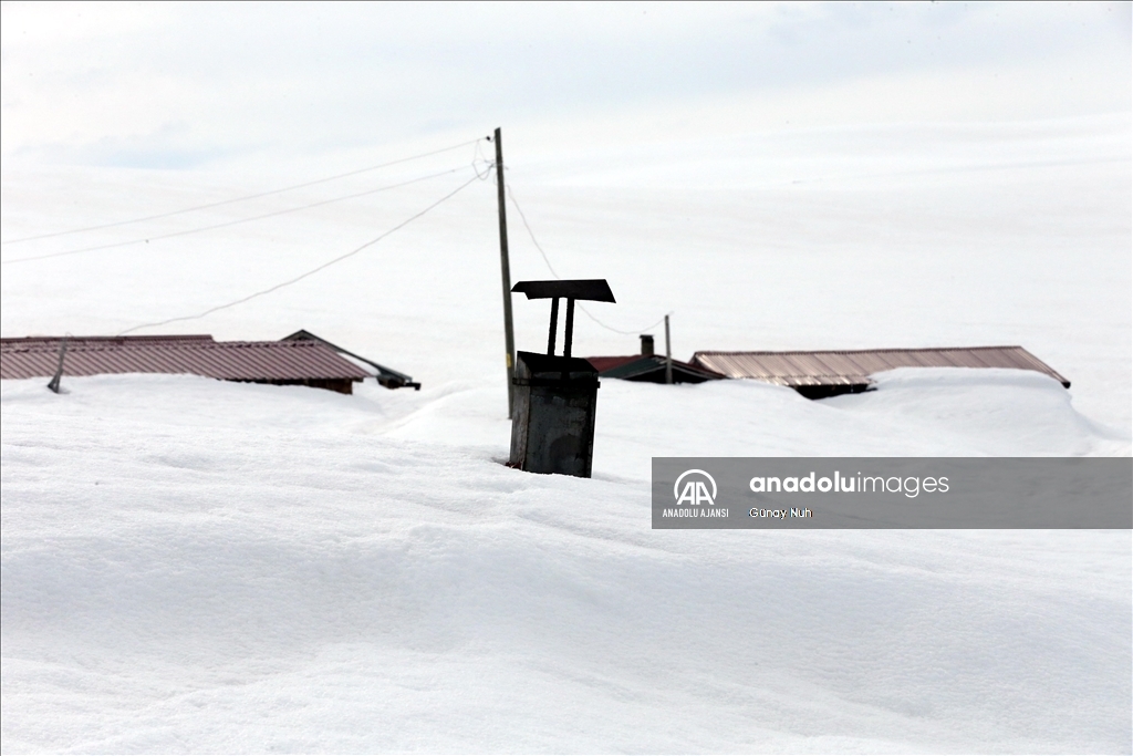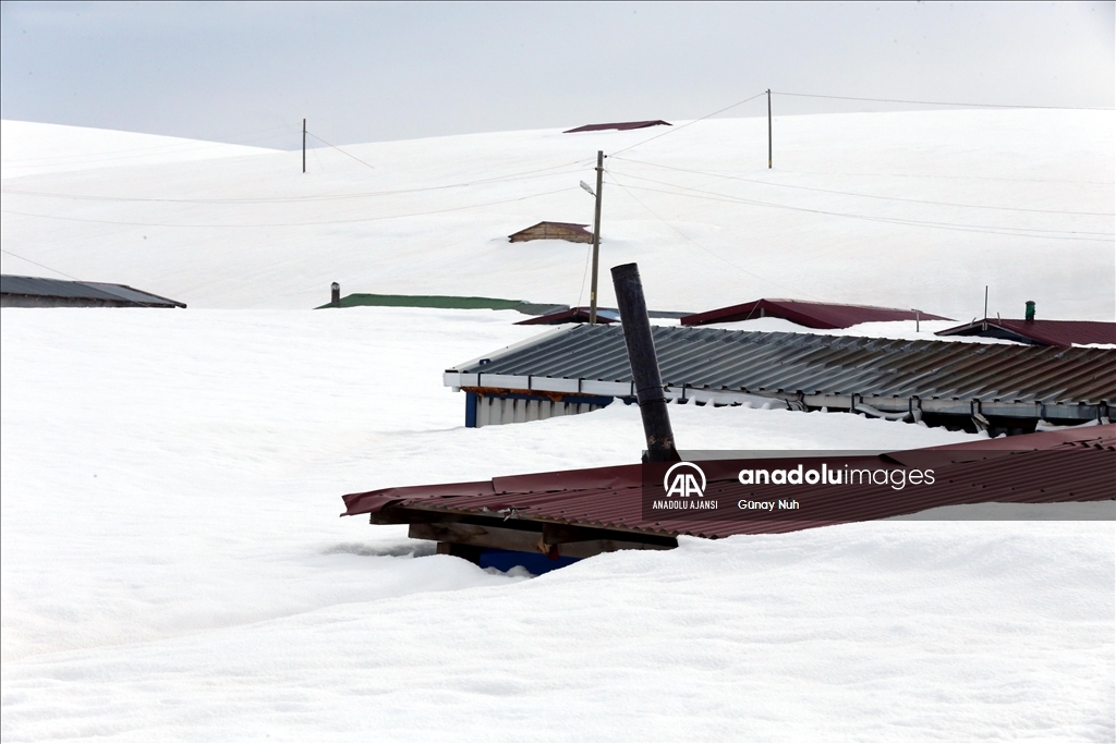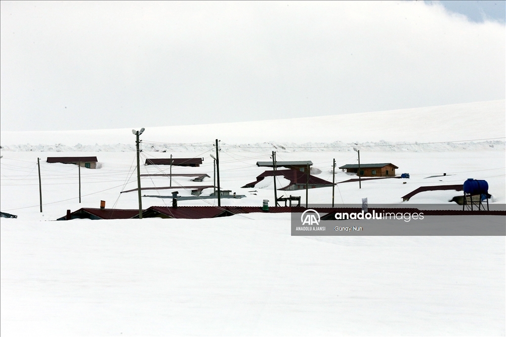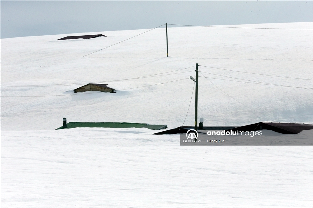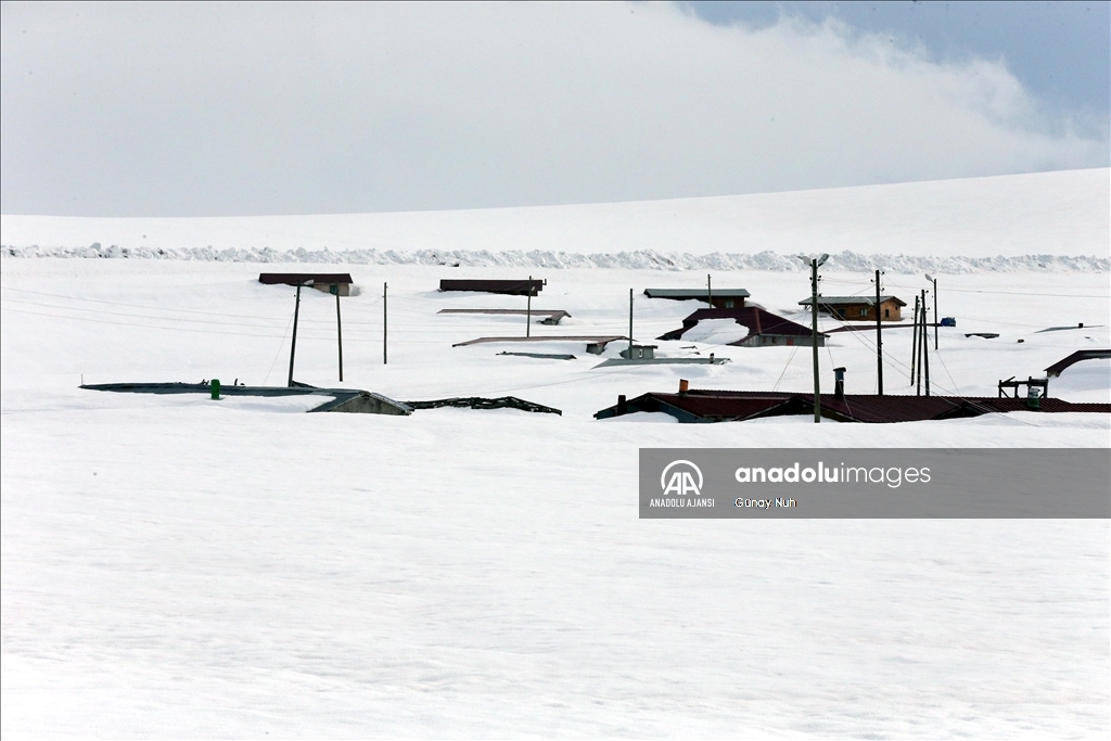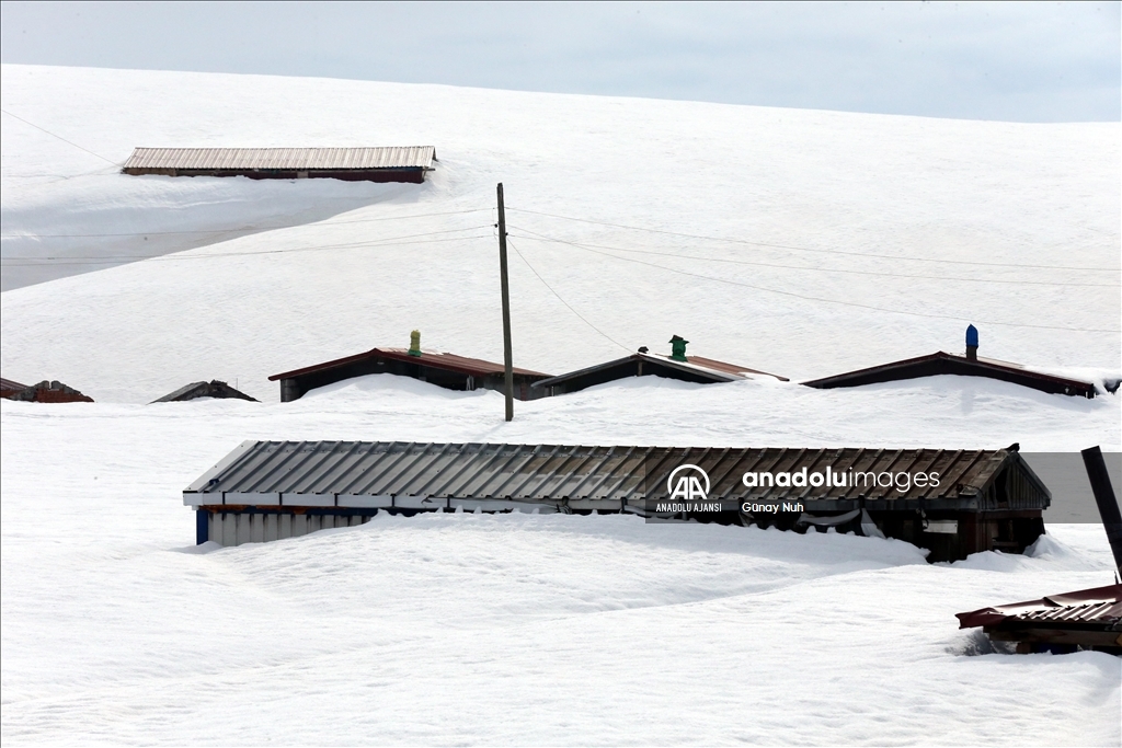 Ardahan'da yayla evleri ilkbaharda kara gömüldü