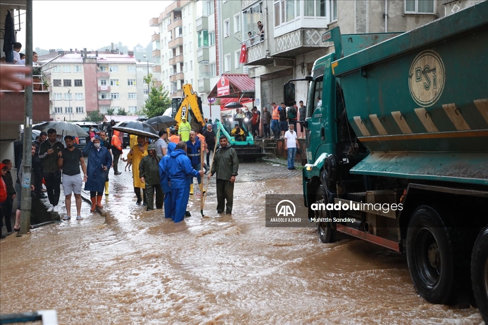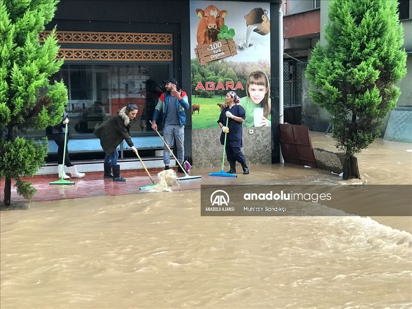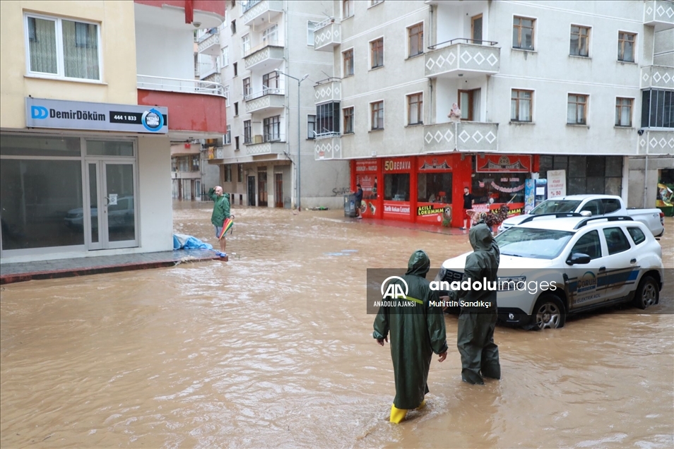 Artvin'in Arhavi ilçesinde, etkili olan sağanağın ardından Boğaziçi ve Cumhuriyet mahallelerinin büyük bölümünde cadde ve sokaklar su altında kaldı.