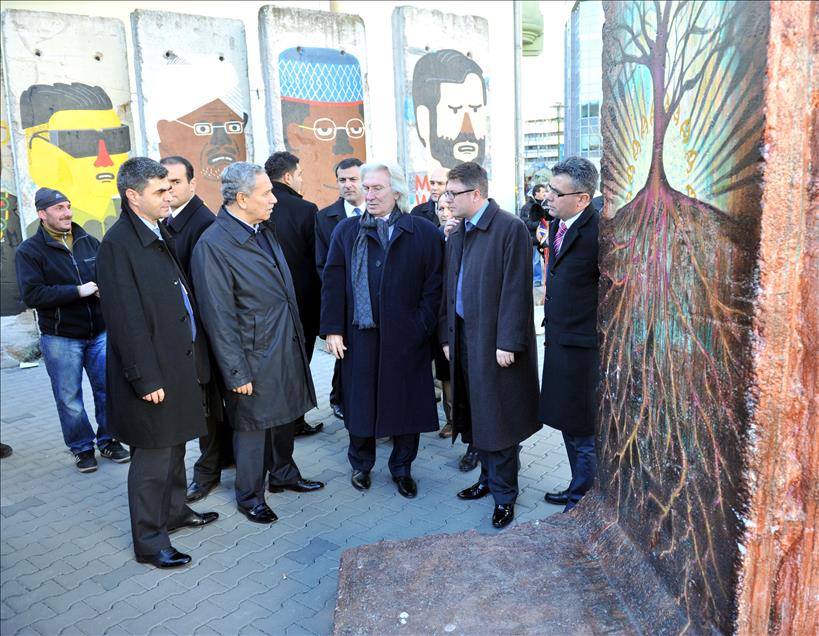 ALMANYA'DA BIR DIZI TEMASLARDA BULUNACAK OLAN BASBAKAN YARDIMCISI BULENT ARINC BERLIN'E GELDI. BULENT ARINC VE BUYUKELCI HUSEYIN AVNI KARSLIOGLU BERLIN'DEKI ACIK HAVADA BULUNAN DUVAR MUZESINI GEZDI. (ANADOLU AJANSI-CUNEYT KARADAG)(20130304)CUNEYT KARADAG