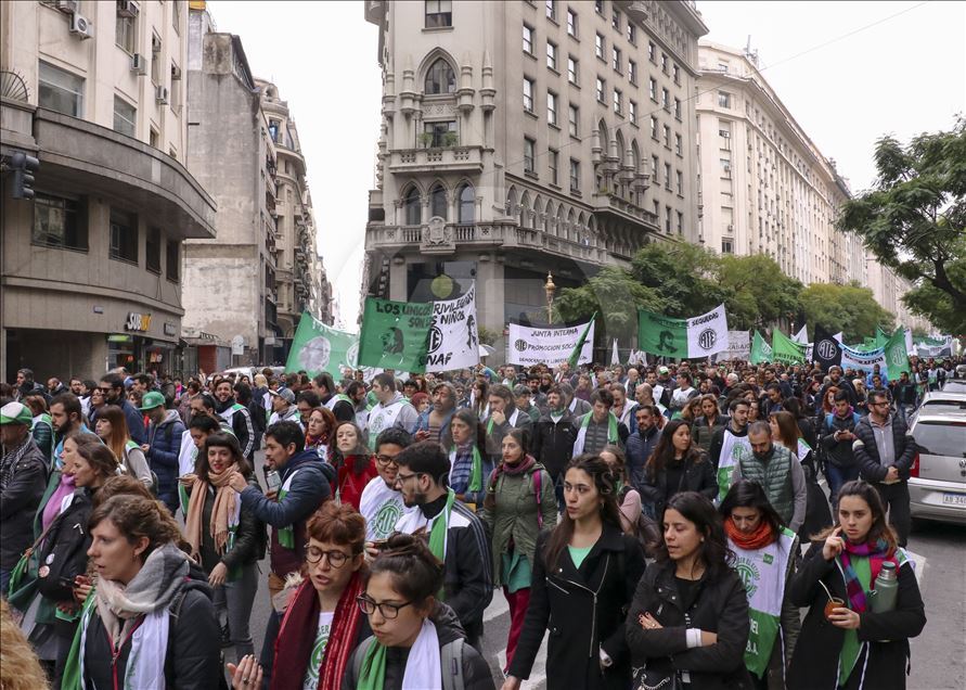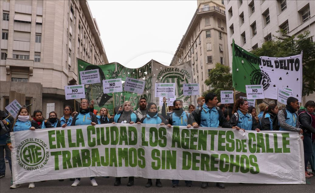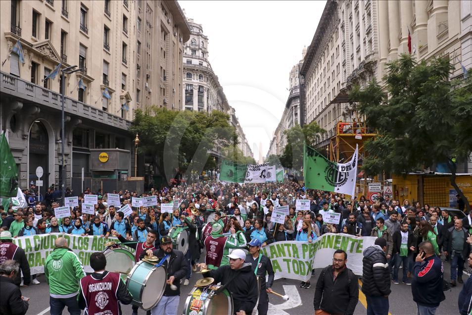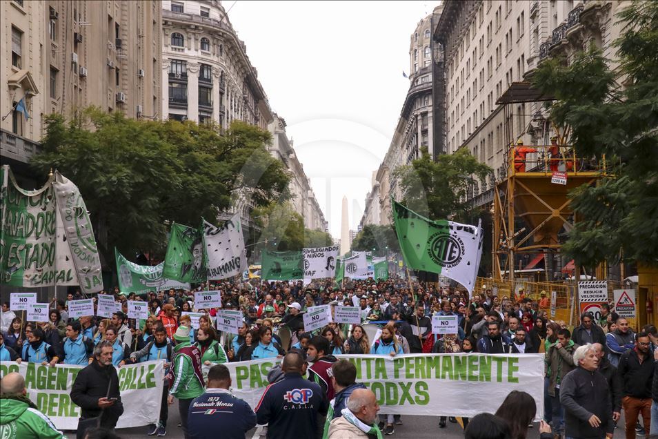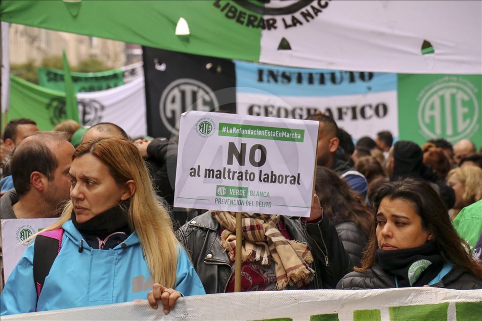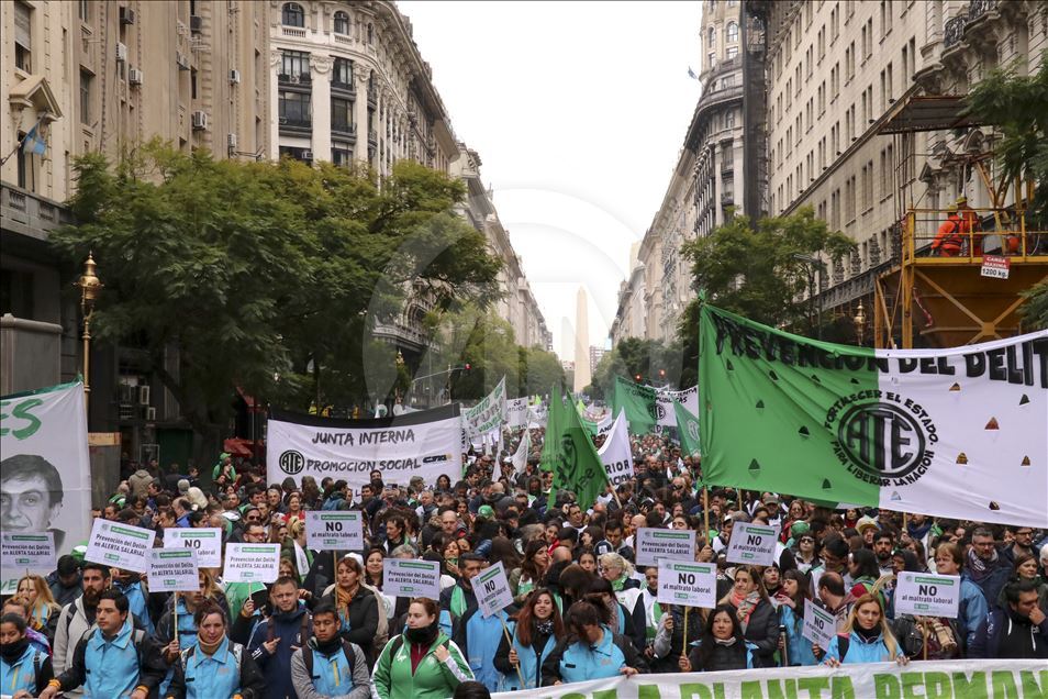 Arjantin'de greve giden bazı sendikalar, çalışma şartlarının iyileştirilmesi talebiyle eylem yaptı. Devlet Çalışanları Birliği (ATE) ve Arjantin İşçi Merkezi'nin (CTA) ülke çapında bugün için yaptığı grev çağrısının ardından başkent Buenos Aires'te yüzlerce kişi daha iyi çalışma şartları talebiyle gösteri düzenledi. Şehrin merkezindeki Obelisco dikilitaşında toplanan göstericiler, devlet başkanlığı binası yakınındaki Mayıs Meydanı'na yürüdü.
