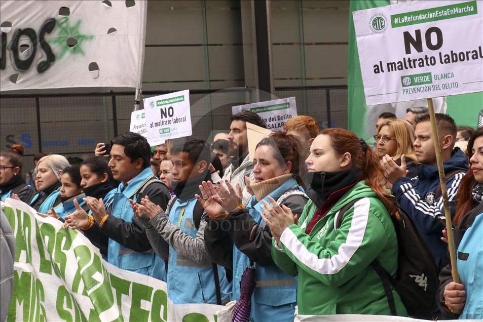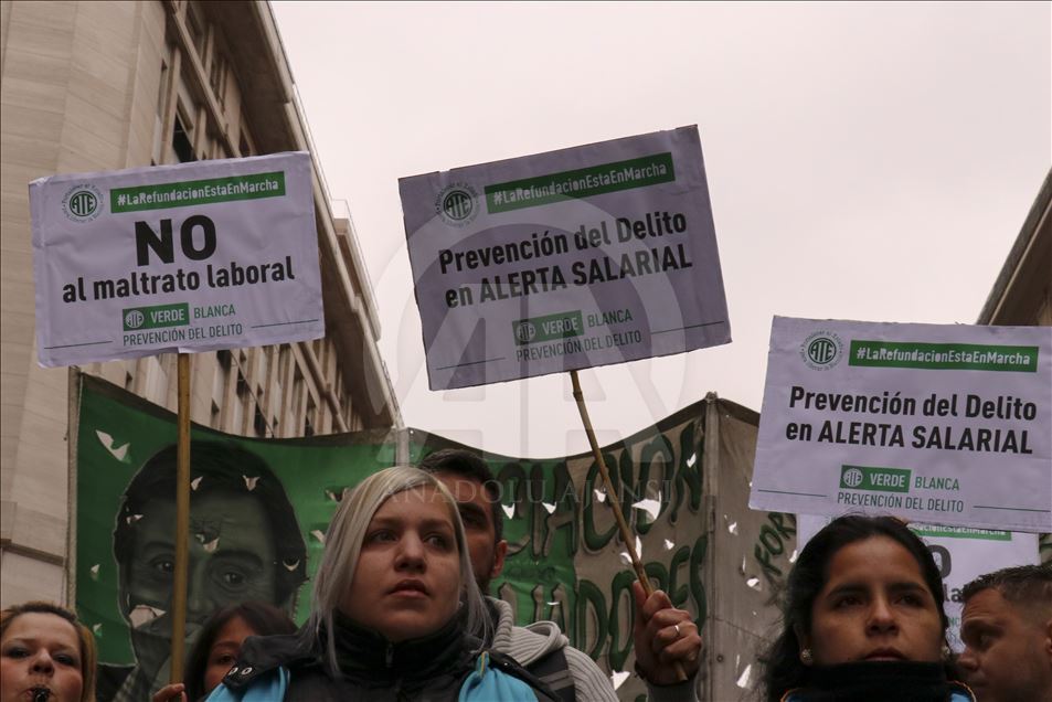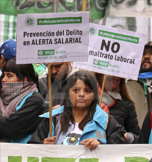 Arjantin'de greve giden bazı sendikalar, çalışma şartlarının iyileştirilmesi talebiyle gösteri düzenledi.